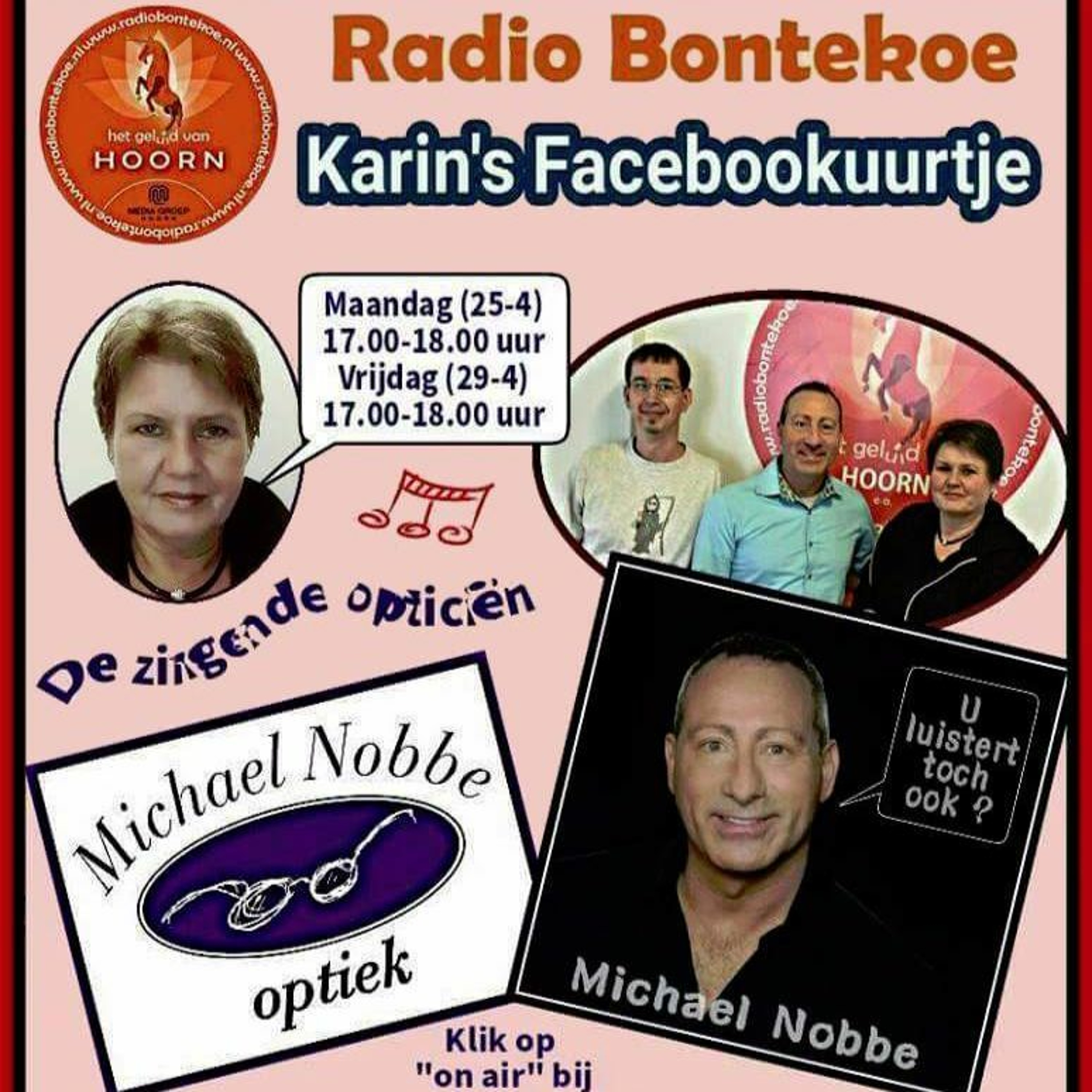 Karin's Facebookuurtje is een programma van Radio Bontekoe, het geluid van Hoorn. www.radiobontekoe.nl