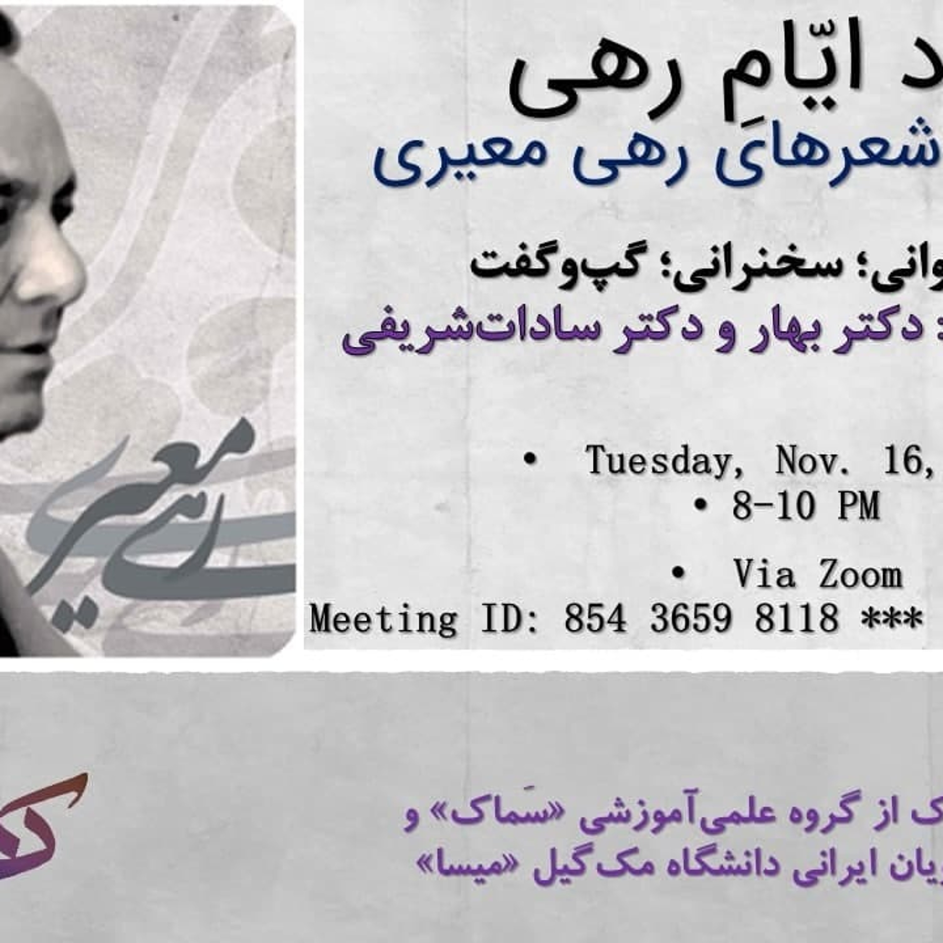 - محتوای «شب شعری به یاد رهی»؛ نشست مشترک میسا (https://t.me/McGillMISA) و سماک؛