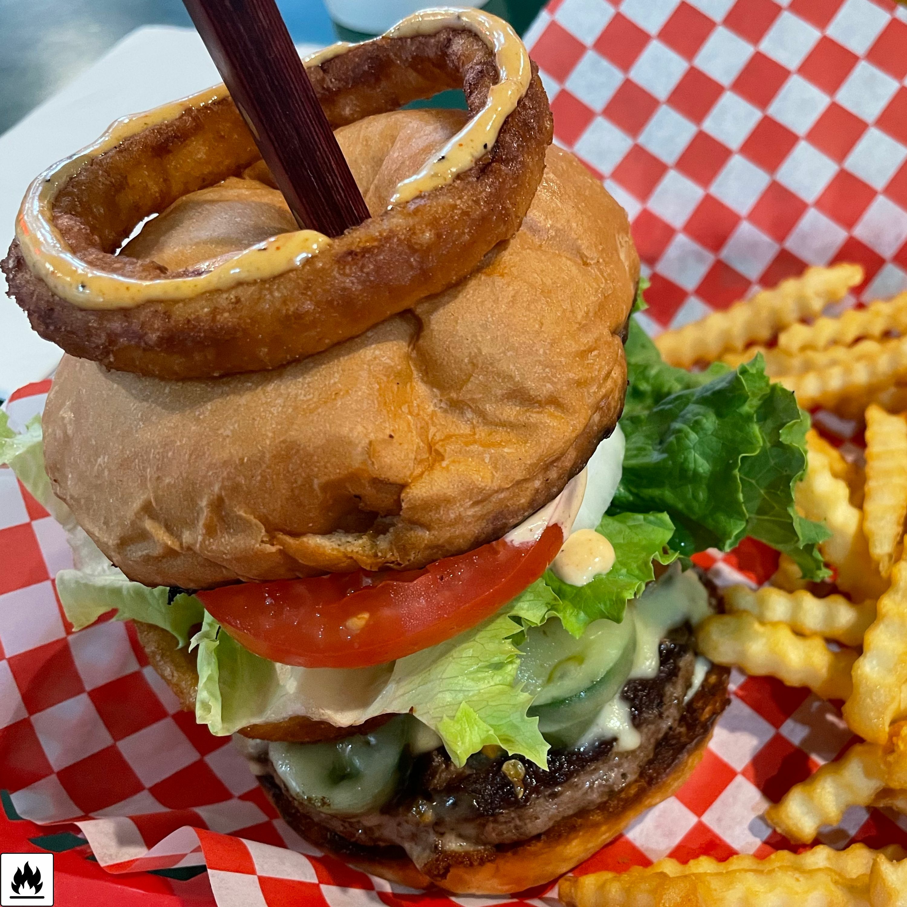 Fresh Beef, JalapeƱos, Cheese, Lettuce, Onions, Onion Ring, Hot Ghost & Reaper Pepper Aioli. **WARNING EXTREMELY SPICY**