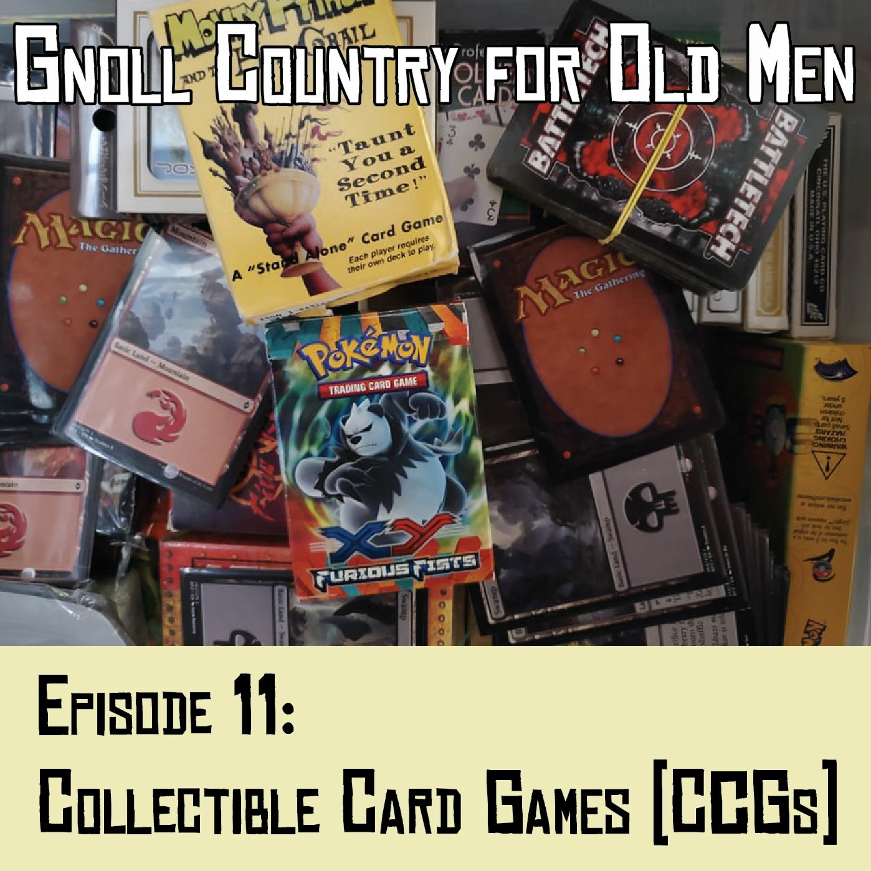 Psst- hey kid, wanna buy some cardboard? This week Gnoll Country for Old Men is talking about Collectible Card Games or CCGs. From Magic: the Gathering to Keyforge, Pokémon to Hearthstone, with reminisces about Battletech, Star Wars, and Yu-gi-oh, we cover the genre. Learn more than you ever wanted to know about where card games came from!