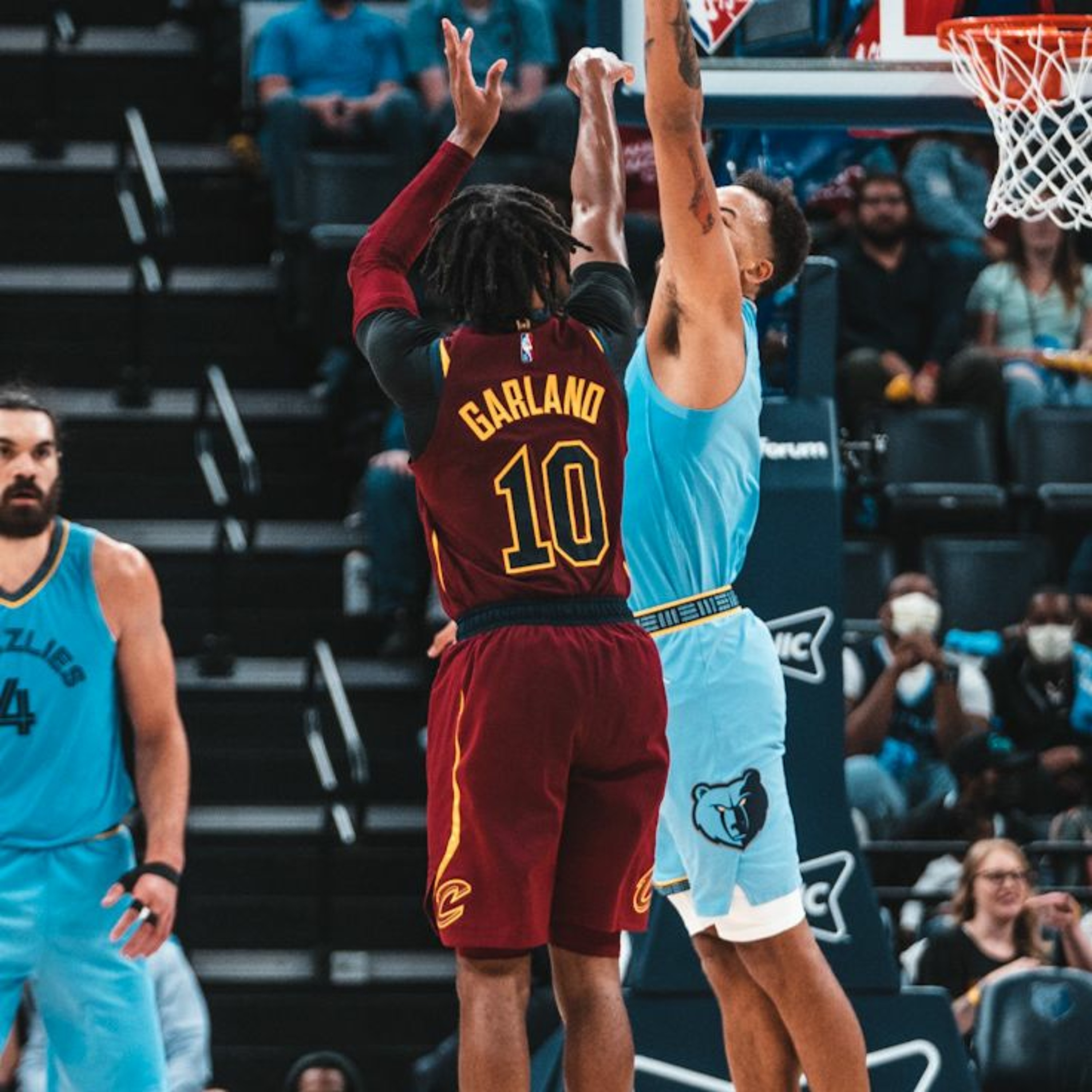 Darius Garland knocks down a late triple to keep the Cavs in the game against the Grizzlies in the season opener.