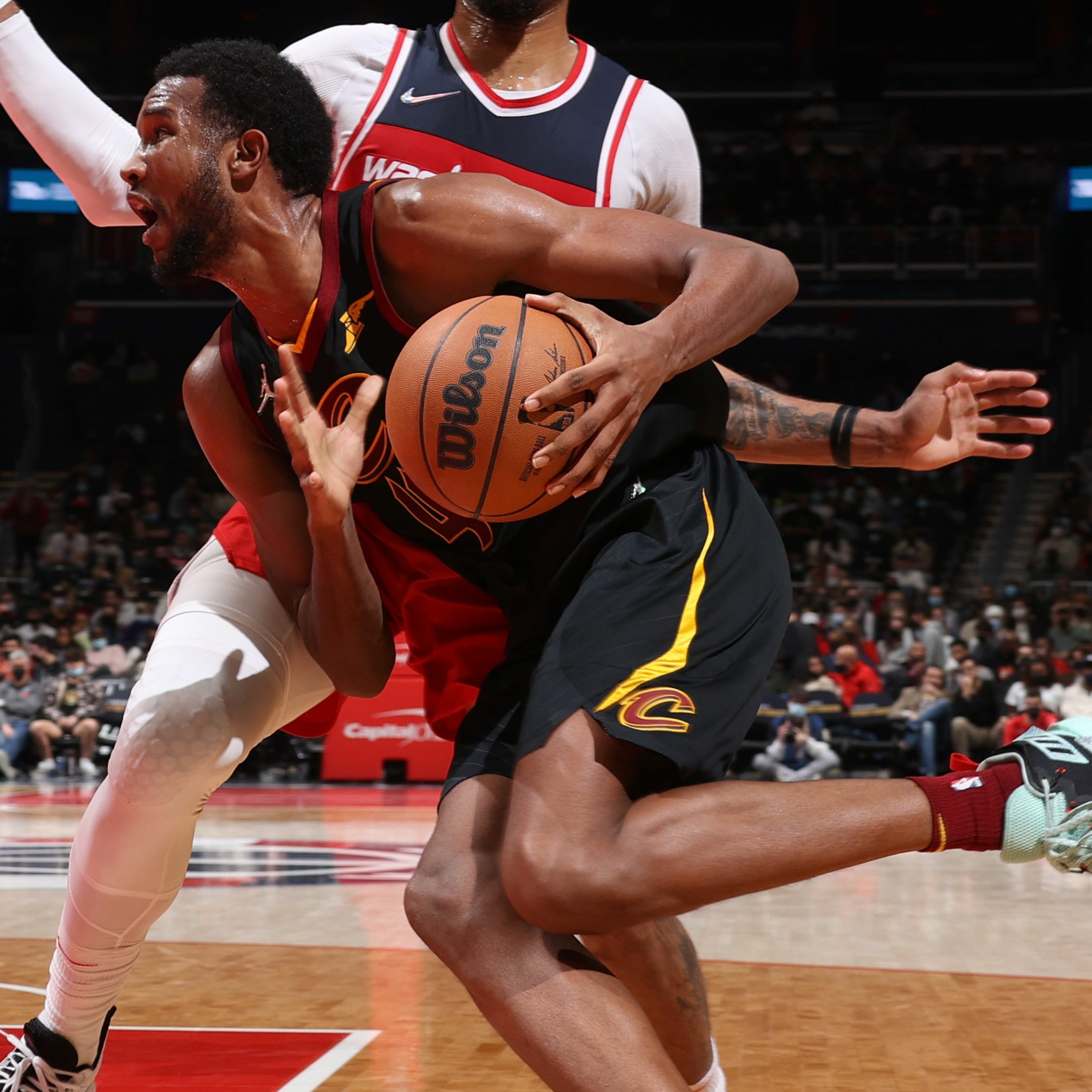 Evan Mobley drives baseline and scores on a great reverse lay-up early against the Wizards.