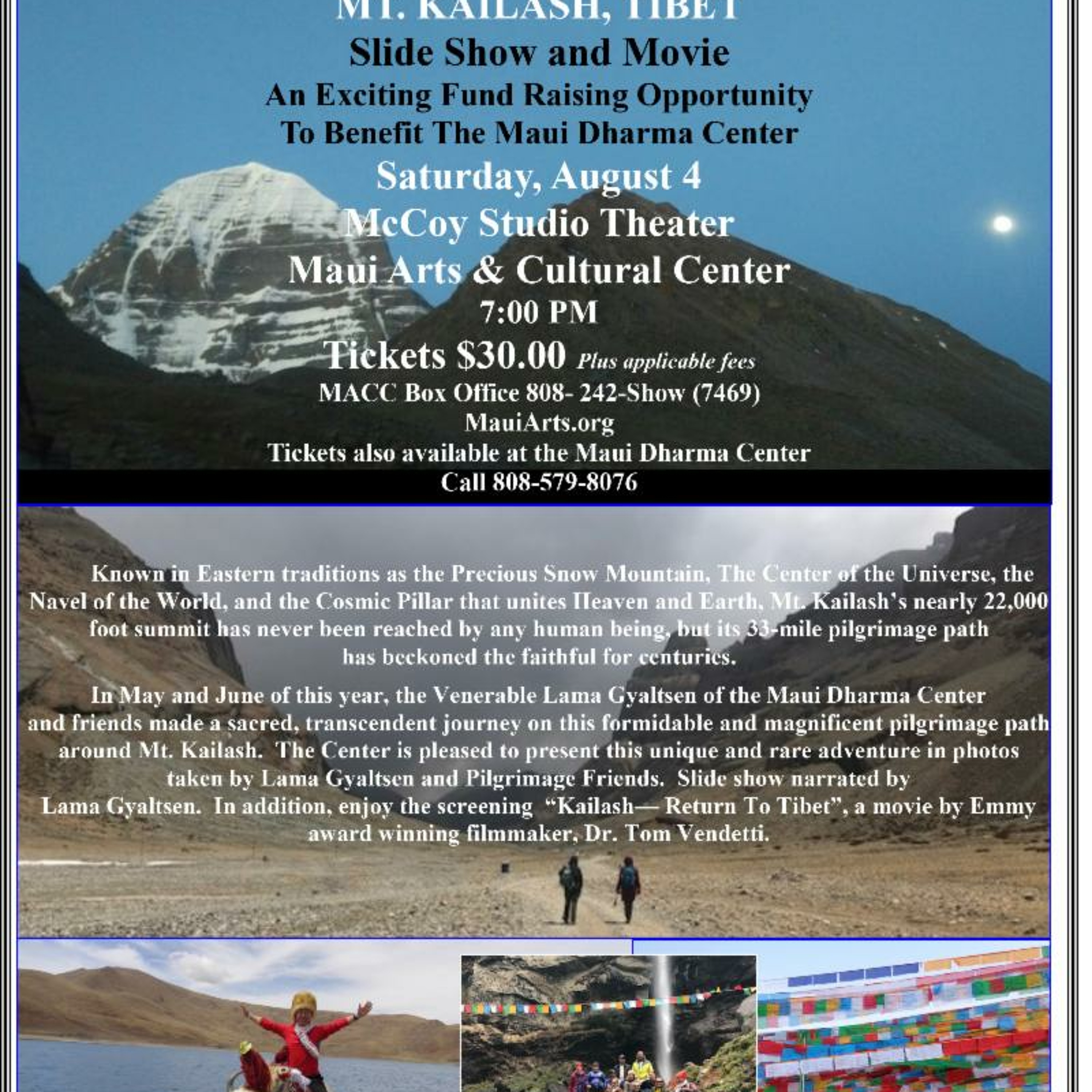 Doug Schenk and Dr. Tom Vendetti talk about recent. Doug Schenk talk about his latest travels with his wife Cindy. He wnet through India and Joined with Tom Vendetti for a trip to Mt. Kailash. A special benefit for the Maui Dharma Center will be held Sat. Aug. 4th at the McCoy Theater at the MACC.