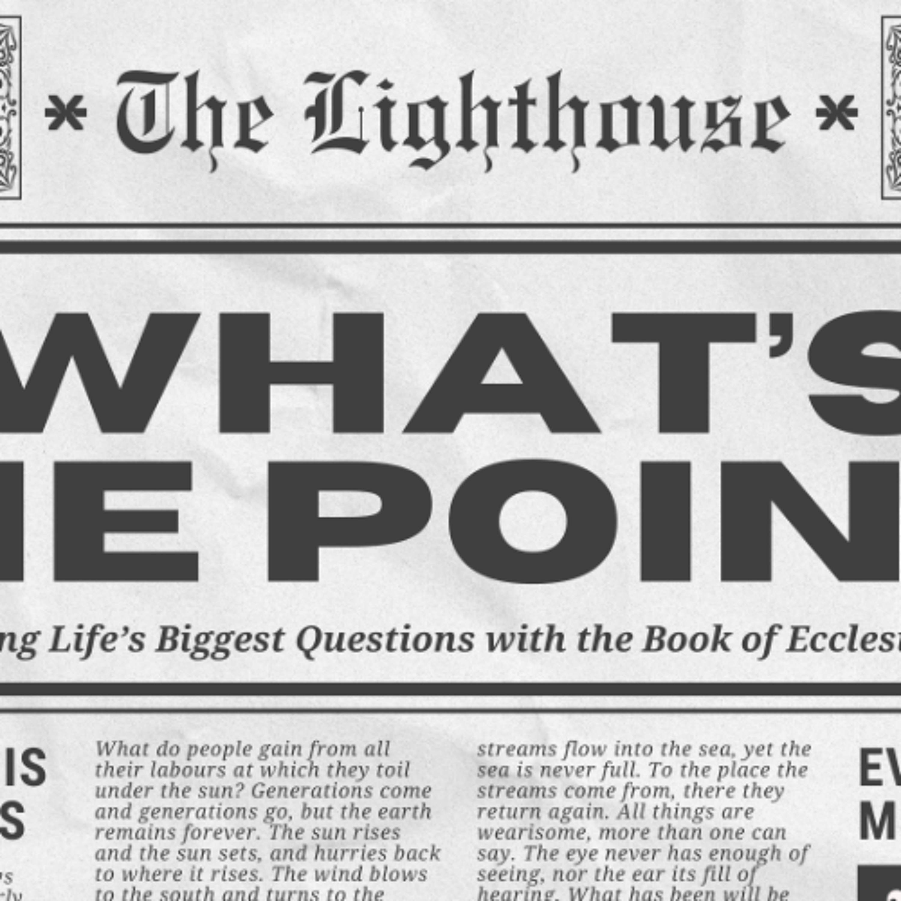 The book of Ecclesiastes feels depressing, but it is included in the canon of Scripture for a reason and it confronts one of life's biggest questions: What's the Point?
