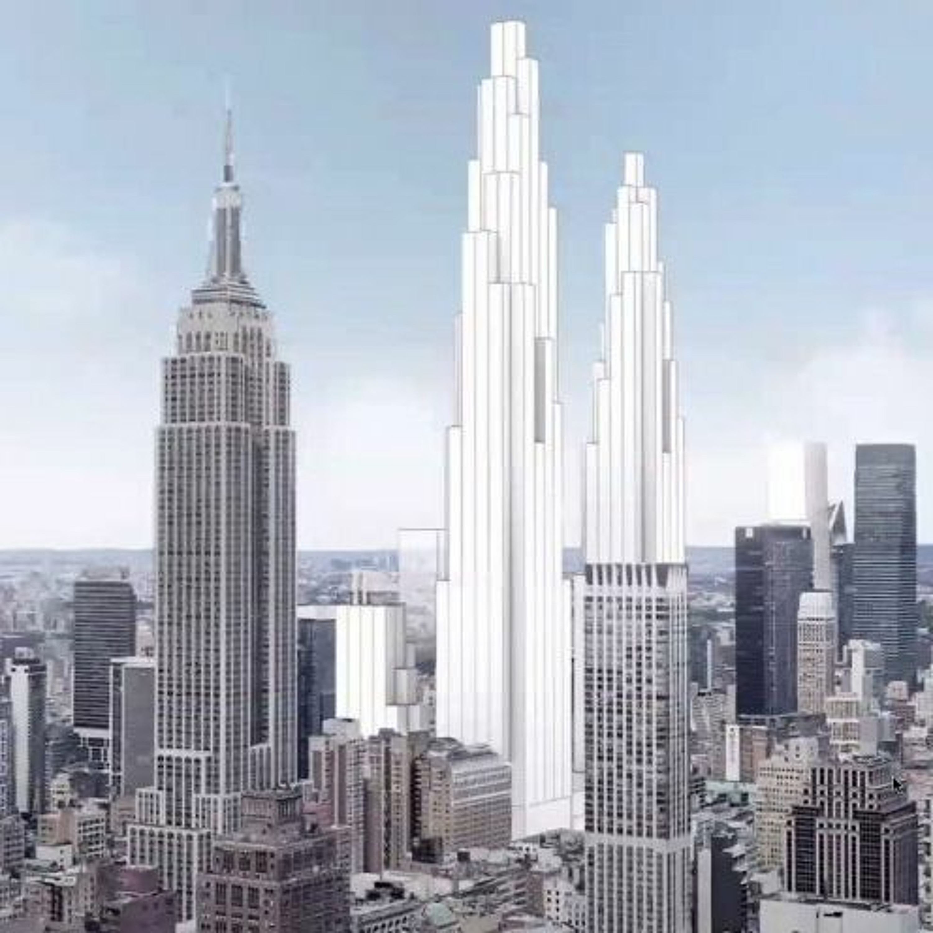 The New York City Council agreed during a meeting earlier this month to move forward with Garden City, a massive plan to relocate Madison Square Garden between two new supertalls of unspecified height in Midtown Manhattan, New York YIMBY reports. Including two shorter buildings, the plan was initially proposed by Vishaan Chakrabarti, founder of Practice for Architecture and Urbanism (PAU), in 2016. Illustrated by an array of renderings, the latest iteration includes preserving the cylindrical shape of Madison Square Garden but removing several floors, recladding the façade with a double-skin curtain wall and adding entryways. The venue would move to an eight-acre site bound by Sixth Avenue to the east, West 32nd Street to the south, Seventh Avenue to the west and West 34th Street to the north. Despite no heights being given, the source observed the supertalls "would easily eclipse the height of the Empire State Building and 30 Hudson Yards." No construction timeline was provided.