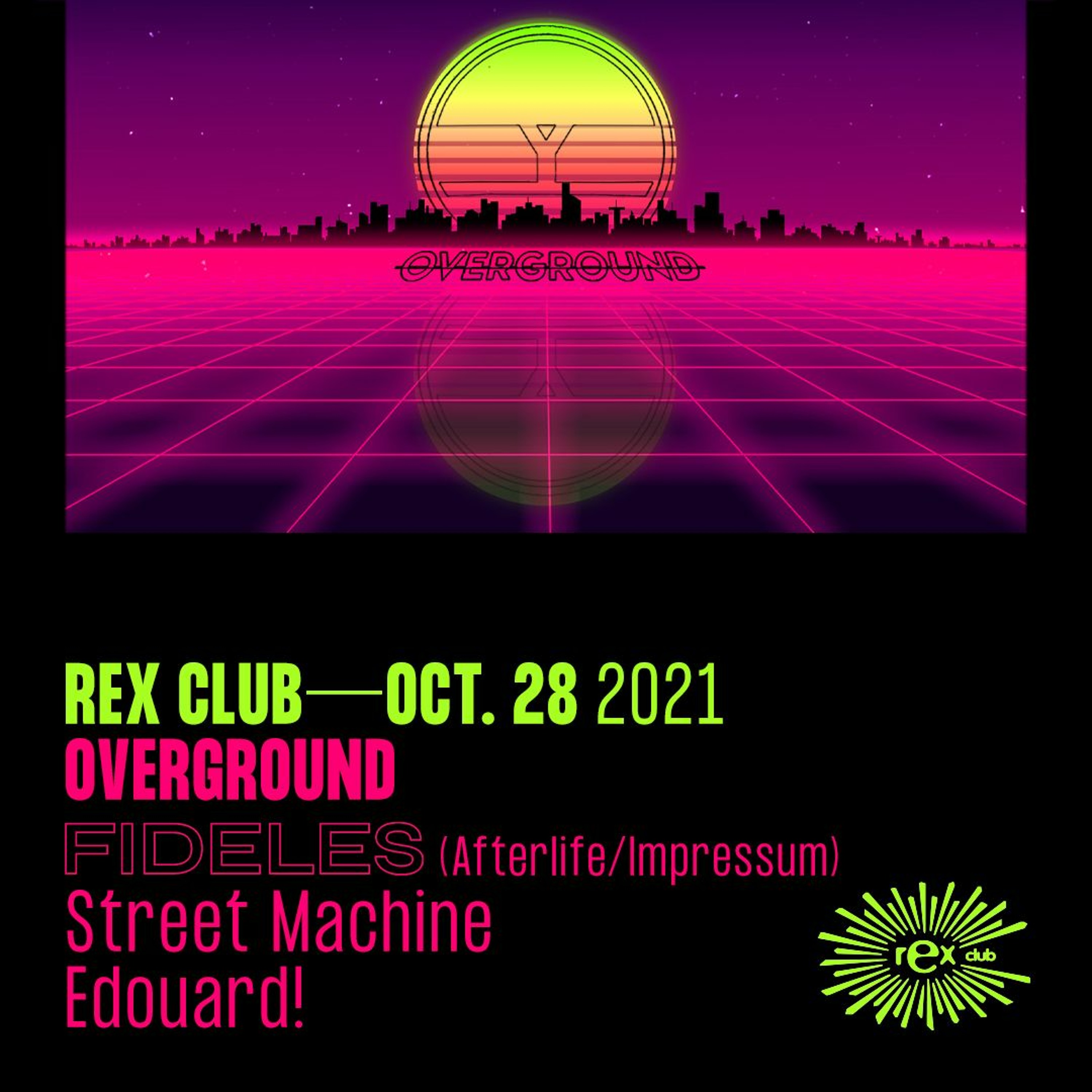 This Thursday Oct. 28th Overground is back at Rex Club with Fideles, Street Machine and Edouard!