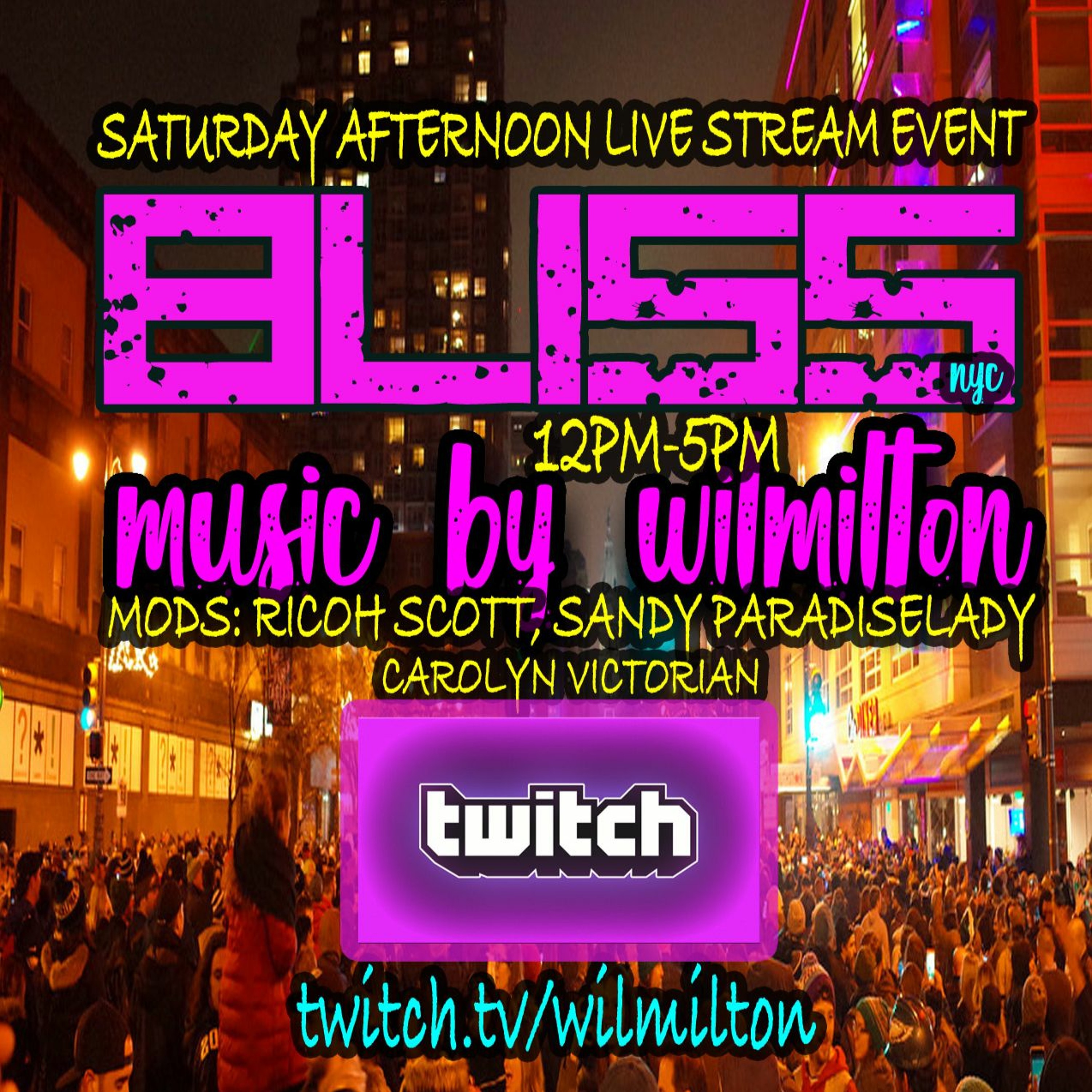 BLISS NYC with Wil Milton Every Sat on Twitch TV 12PM