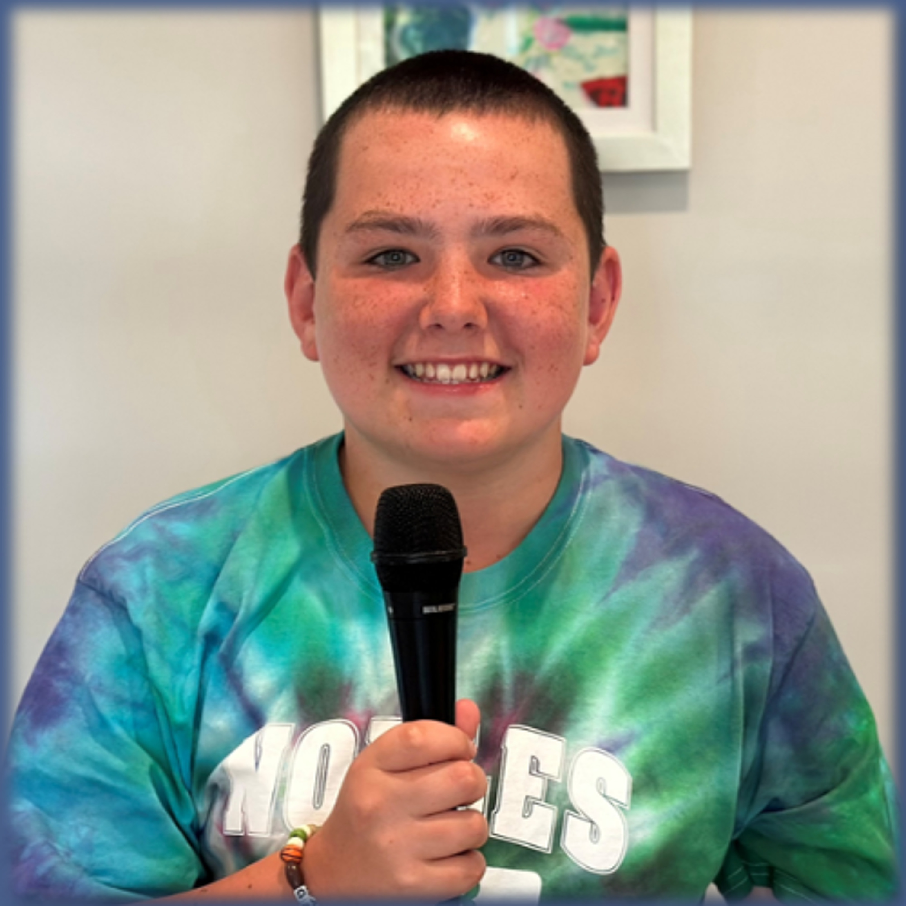 Tom Leyden connects with rising 6th grader Gavin Donahue, the winner of Martha Jones "Join Us On A Podcast" auction.