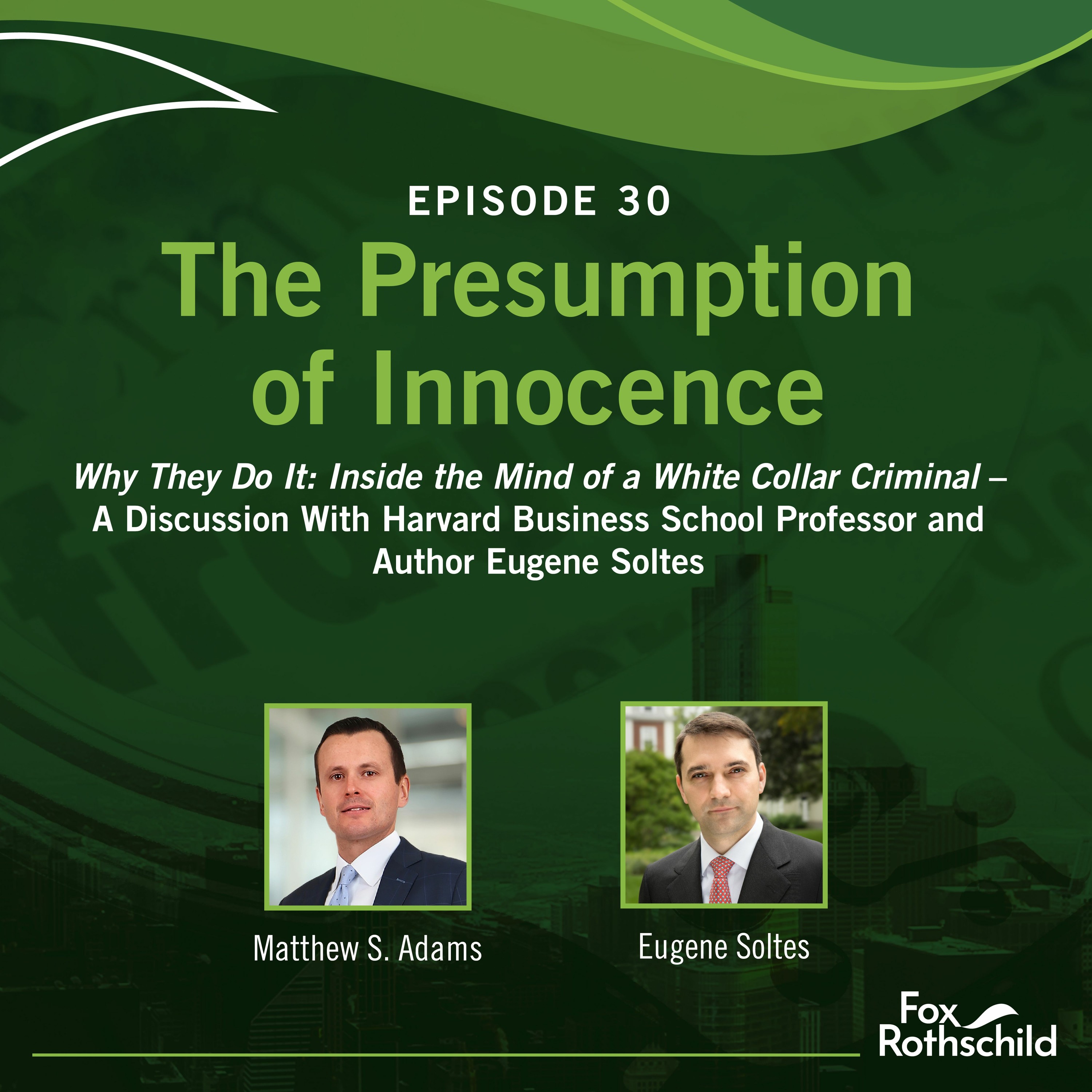 The episode takes a look at how white-collar crime has been perceived over the last century in the United States – from an inherent element of capitalism to today’s highly regulated environment. Eugene and Matt also discuss why individuals become involved in such schemes and what role technology plays in giving the illusion that it’s a victimless crime.