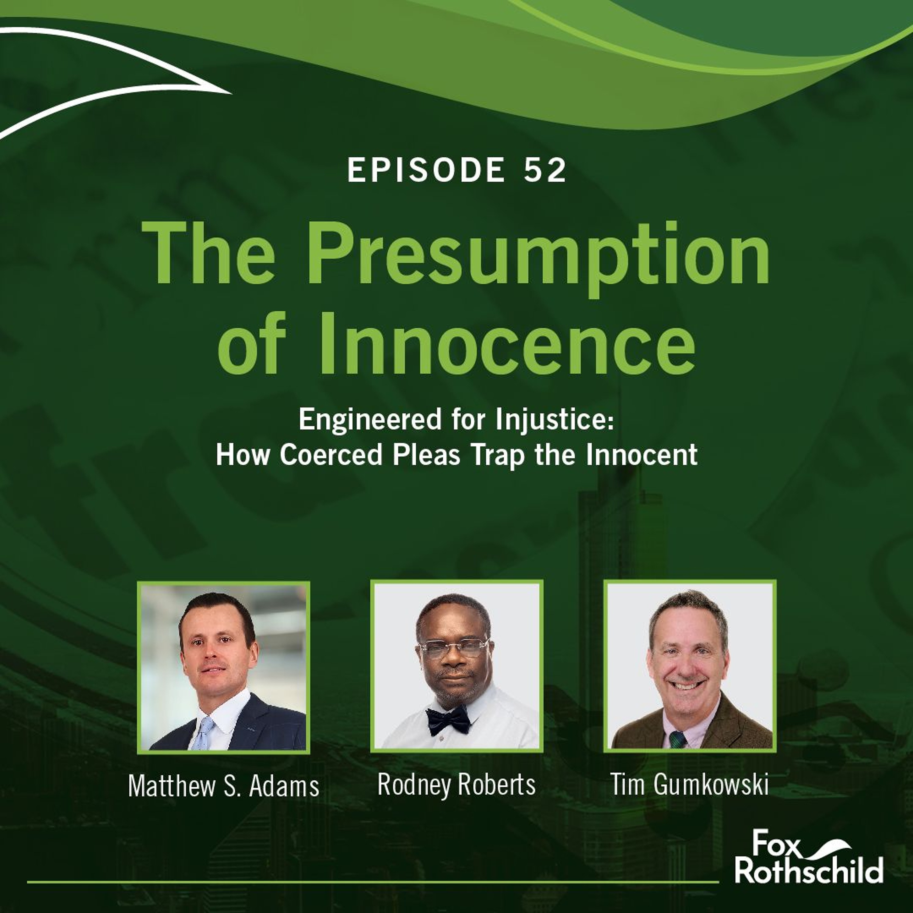 In this wrenching episode, Rodney joins host Matt Adams and defense attorney Tim Gumkowski of the Innocence Project to share his personal story of coercion into a guilty plea and the years of his life he lost as a result, trapped in a system that refused to acknowledge its mistake.