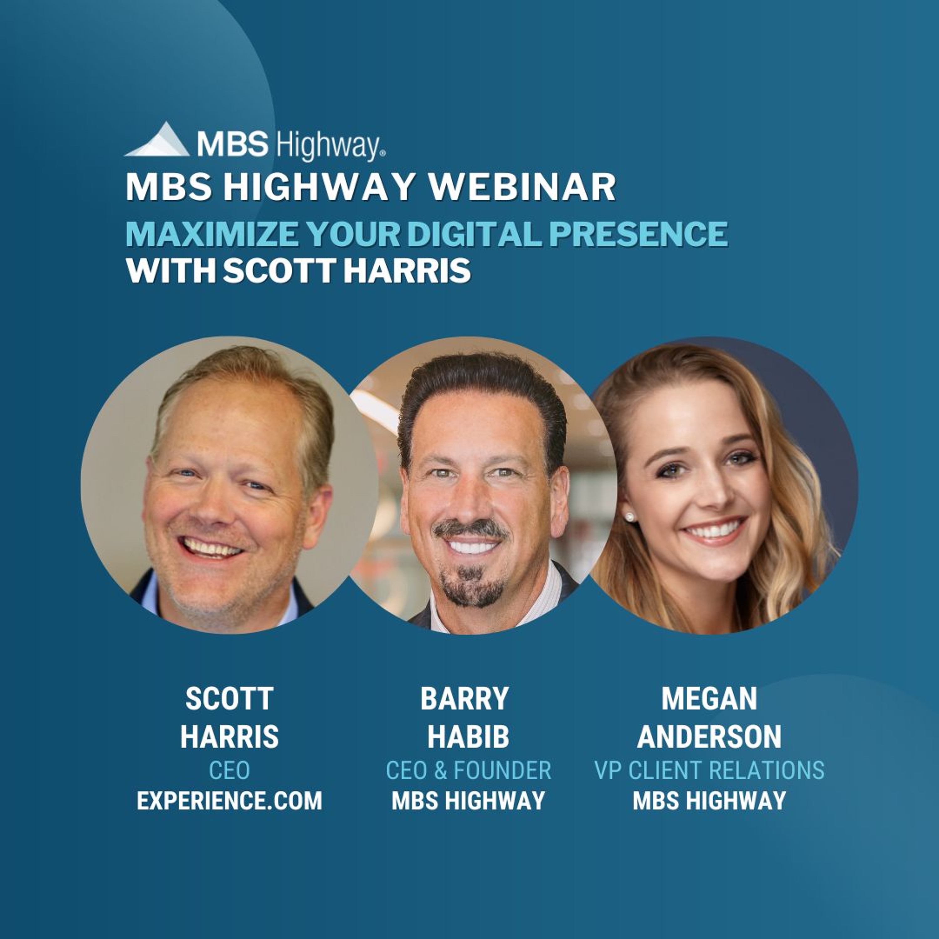 Scott Harris joins MBS Highway to share essential strategies that leverage innovative technology to boost reviews, increase your Google ranking, and optimize your online presence. You’ll learn more about winning your local market with Experience.com so you rank at the top of local searches, boost your professional network, control your reputation and more!