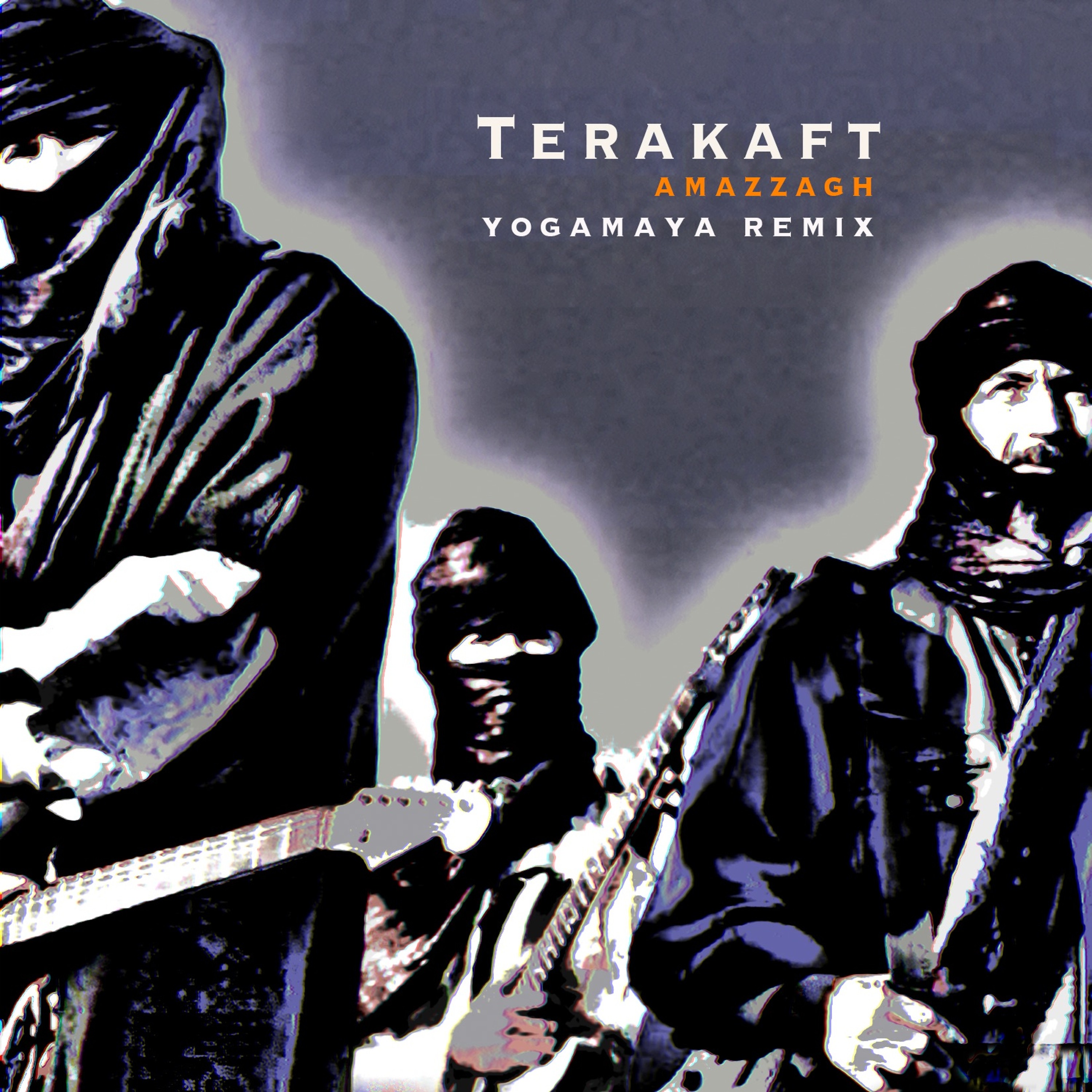 This is a remix on amazing track by Terakaft, called Amazzagh. I believe that this name means something like a Touareg, a free person, a nomad, a rolling stone and Terakaft means "caravan" in Mali language (Tamashek). These guys are from Sahara desert but released their music on French label World Village.