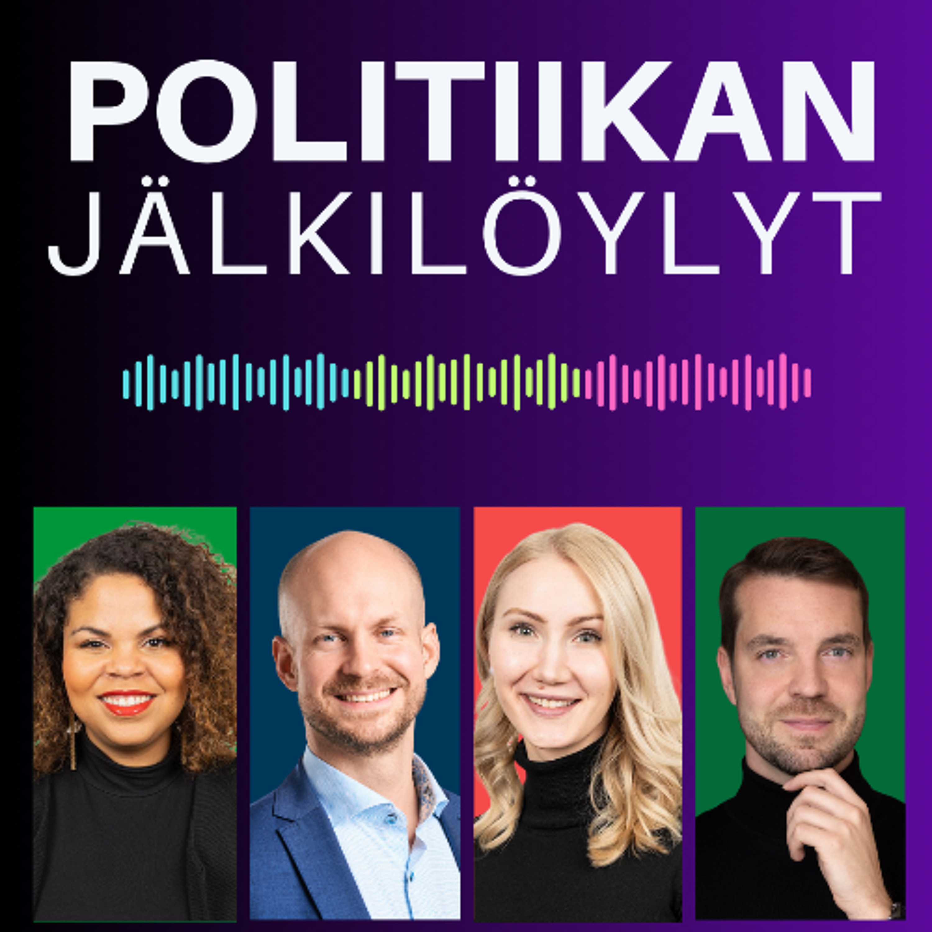 Studiossa Fatim Diarra (vihr.), Ville Valkonen (kok.), Pinja Perholehto (sd.) ja Jouni Ovaska (kesk.). Juontajana Niilo Toivonen