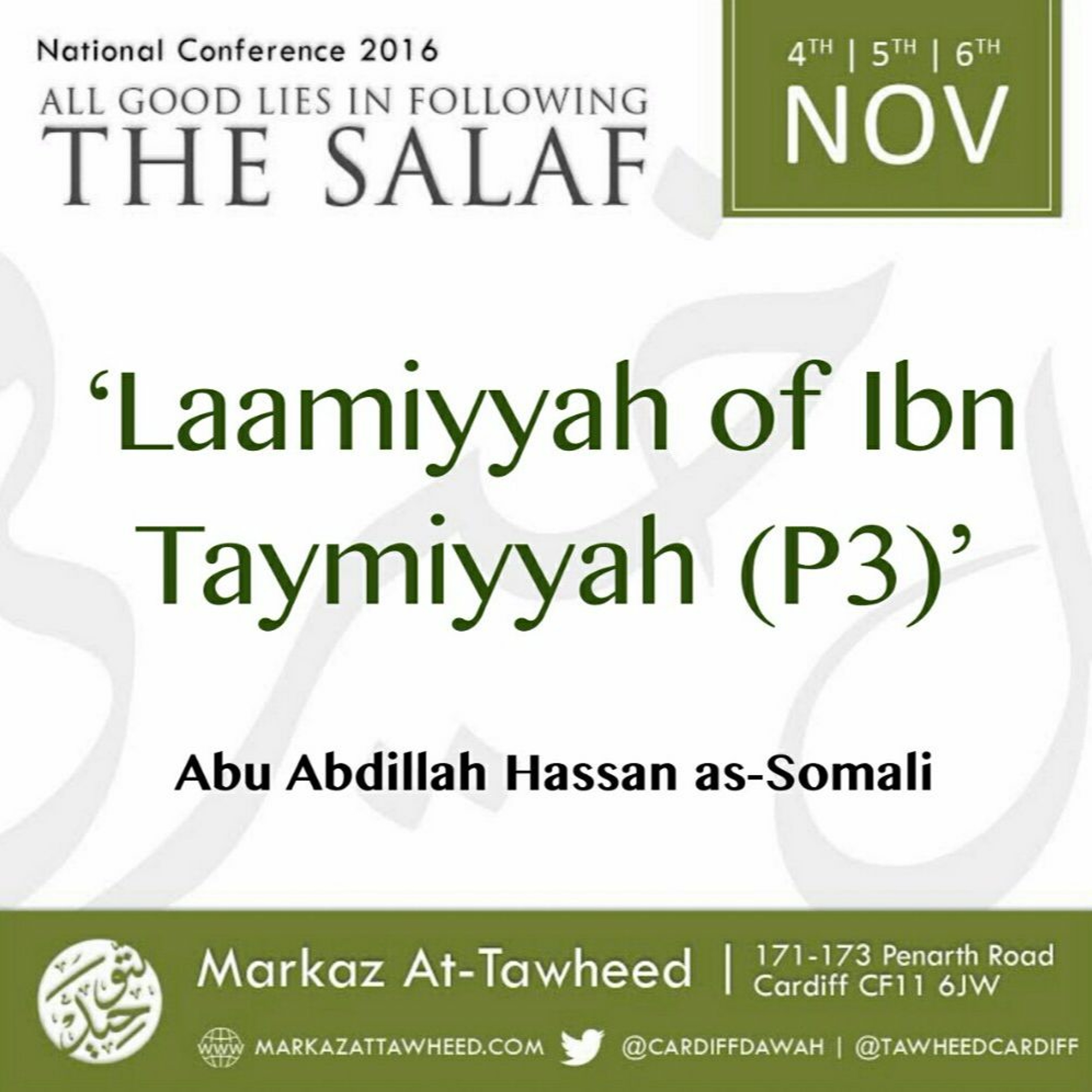 The speaker gave a strong encouragement to memorise the text. You can find it online at: http://www.aqidah.com/creed/articles/kyzvz-translation-of-the-laamiyyah-poem-ascribed-to-ibn-taymiyyah.cfm