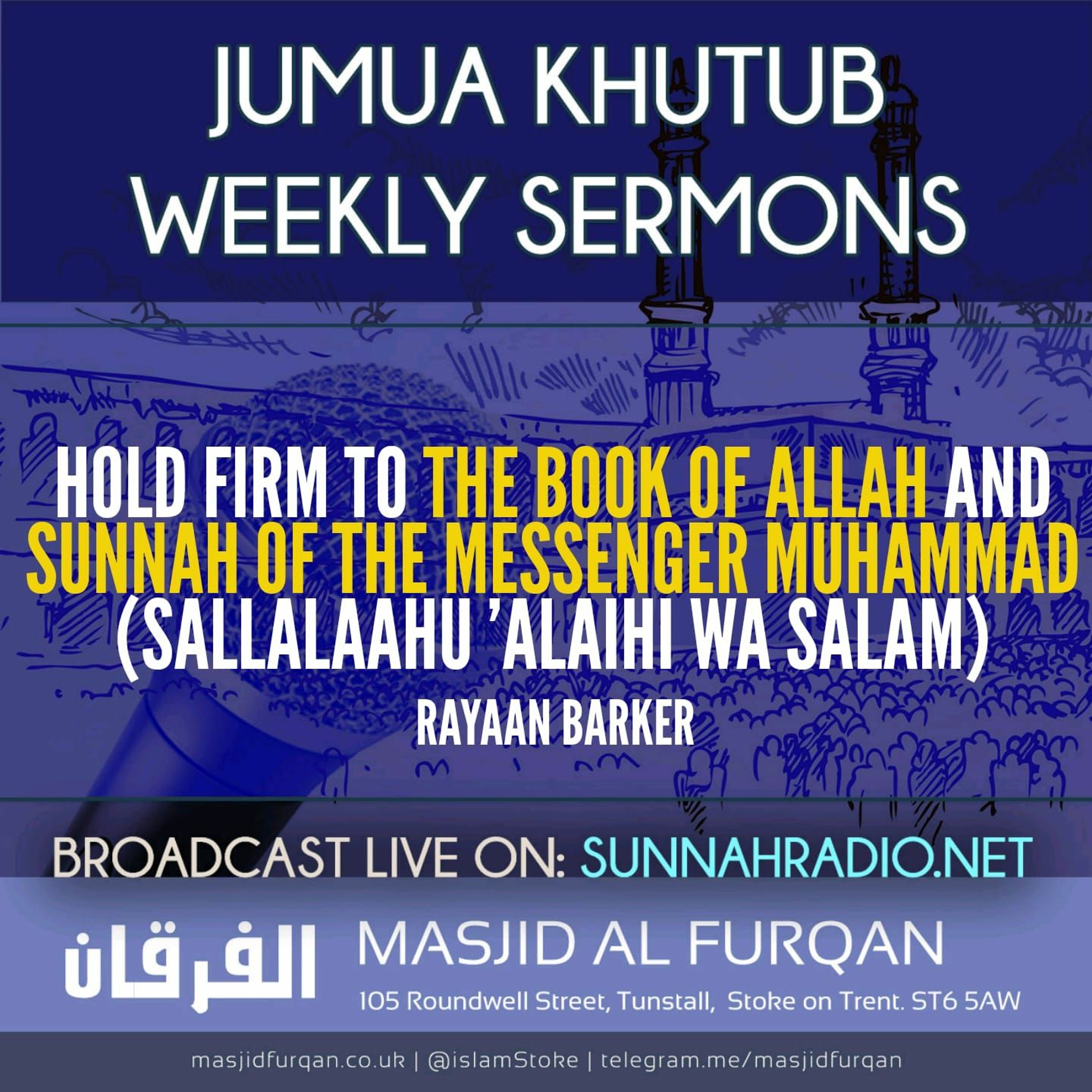 In this khutbah Ustaadh reminds us of the command of Allaah for us to implement and abide by The Qur'aan and The Sunnah of His Messenger (sallallaahu alayhi wasallam).