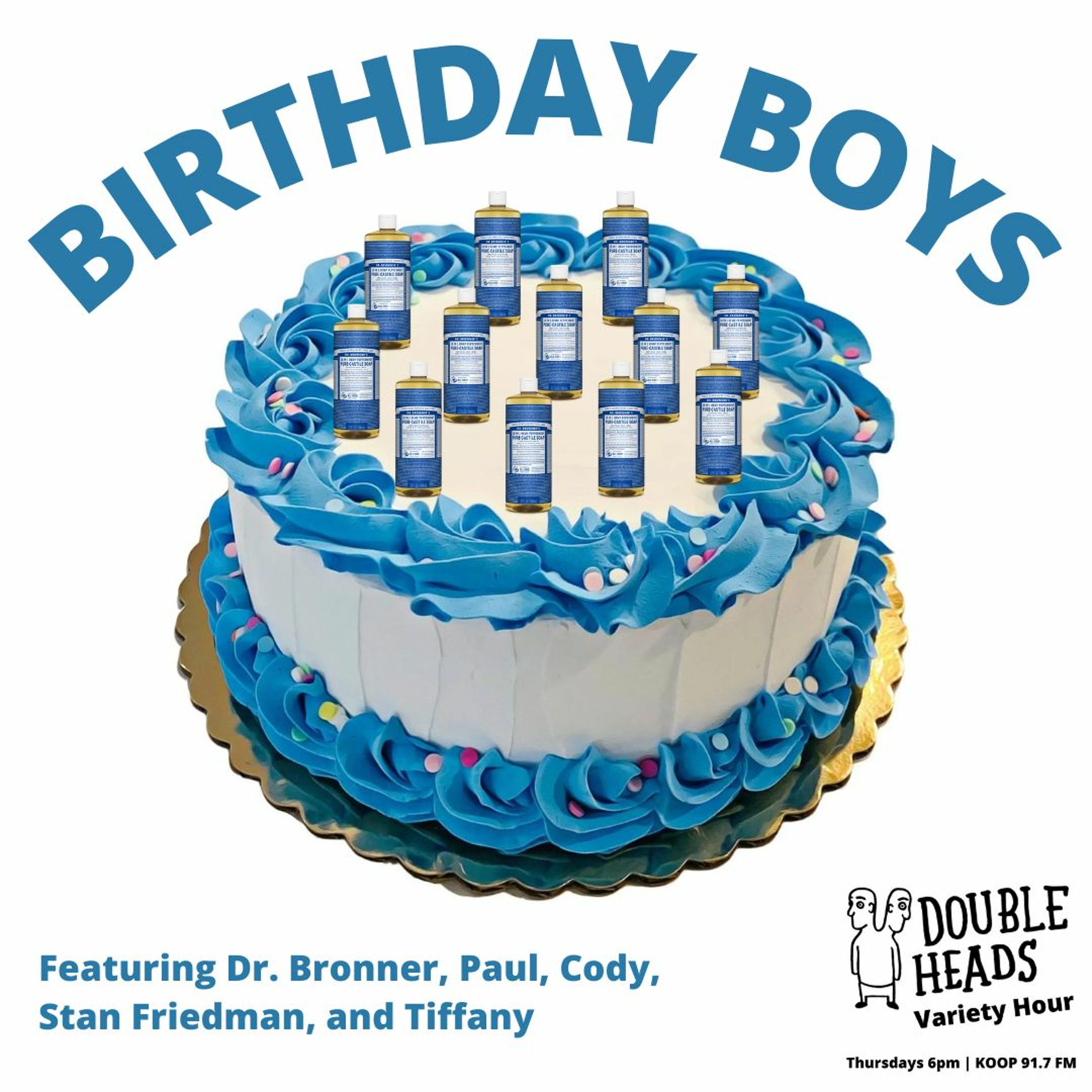 This week Double Heads Variety Hour presents “Birthday Boys" where DJs Matt Fox and Dillon Minacci presents a playlist combining songs Matt likes and songs Dillon likes. They try to inflate their pool, scratch lottery tickets, and talk to too many callers.