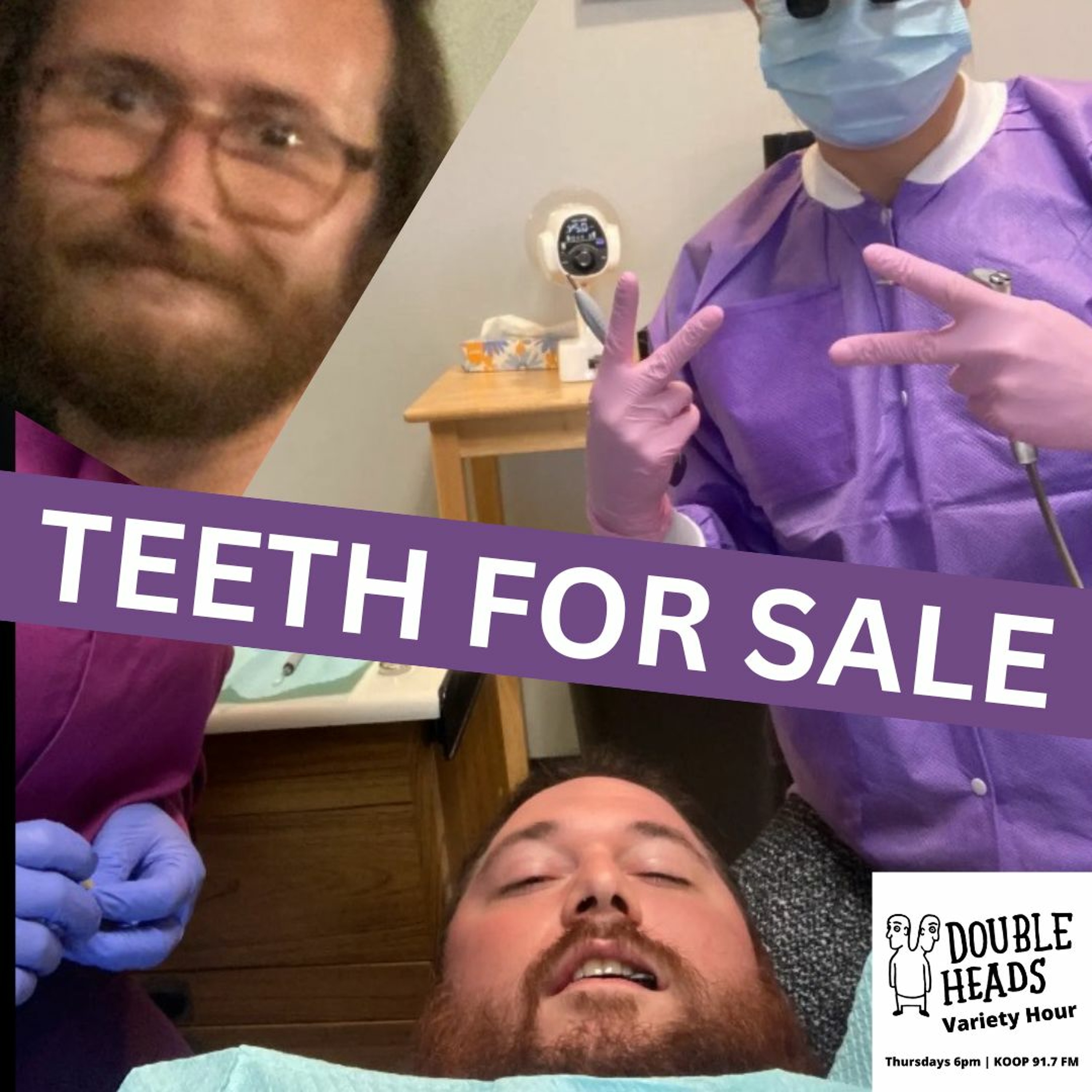 Double Heads Variety Hour presents “Teeth for Sale," where DJs Dillon Minacci and Matt Fox present a playlist combining songs about teeth and candy. They meet a dental tech, discuss the legalities of tooth selling, and talk about their favorite sweets.