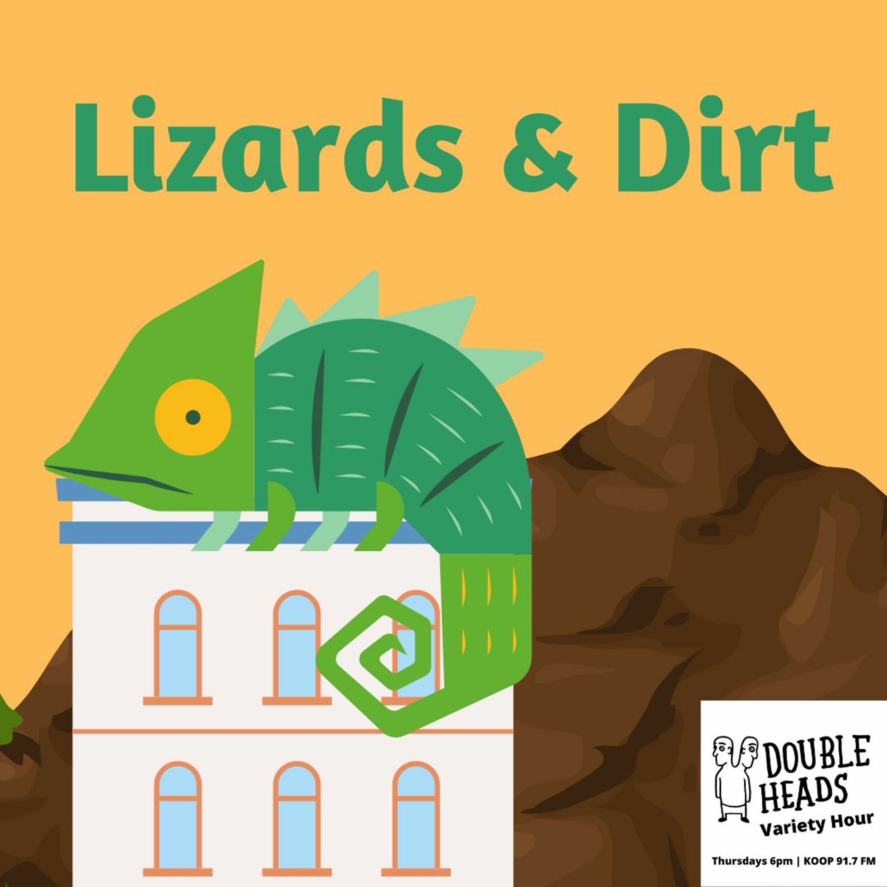 Double Heads Variety Hour presents "Lizards & Dirt," where DJs Dillon Minacci and Matt Fox present a playlist combining songs about lizards and dirt. They meet a business duo, share stories about their past week, and learn about lizard behavior.