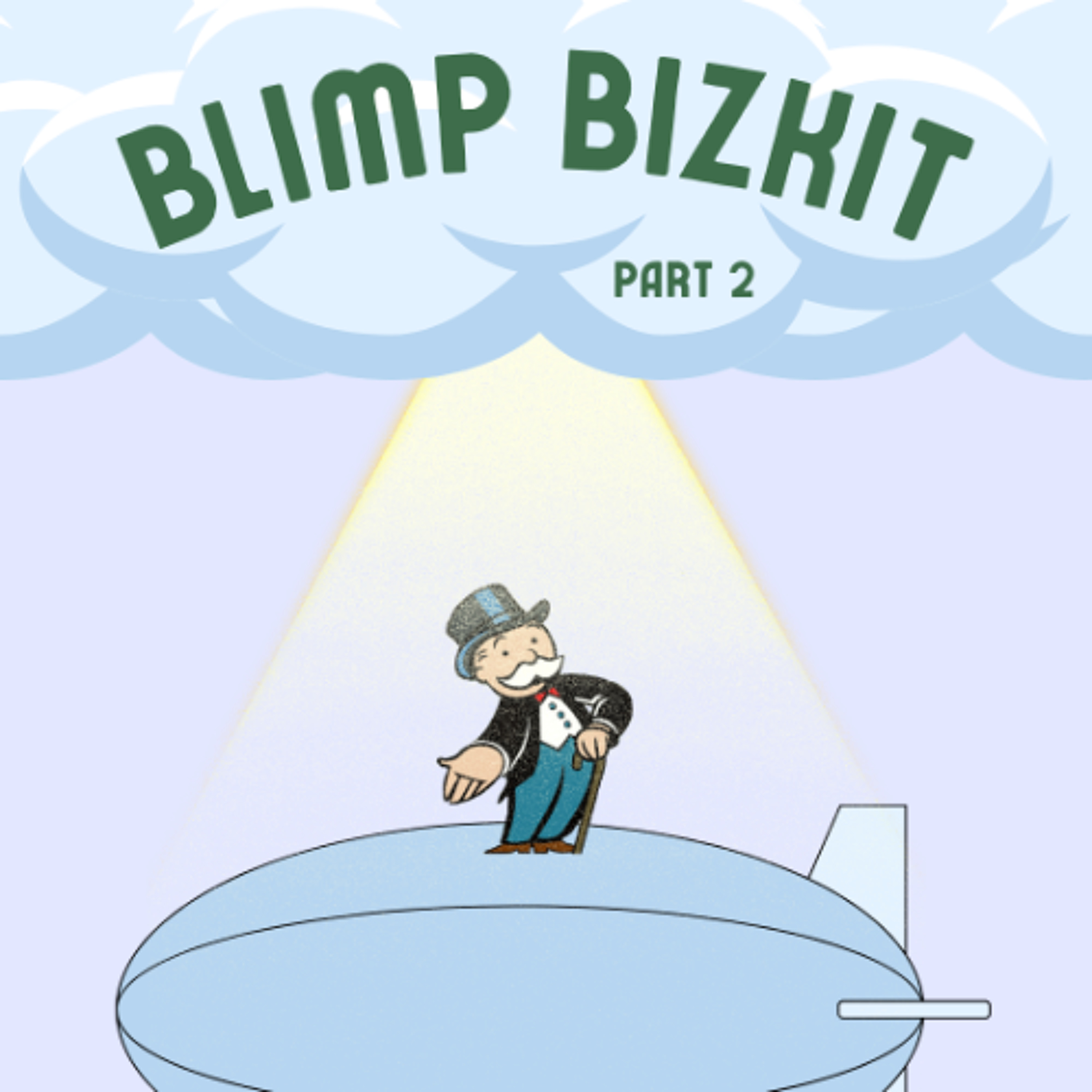 Double Heads Variety Hour presents "Blimp Bizkit Part 2," where DJs Dillon Minacci and Matt Fox present a playlist combining video game and film scores. They explore their blimp, learn about new wars, and employ a child wonder.