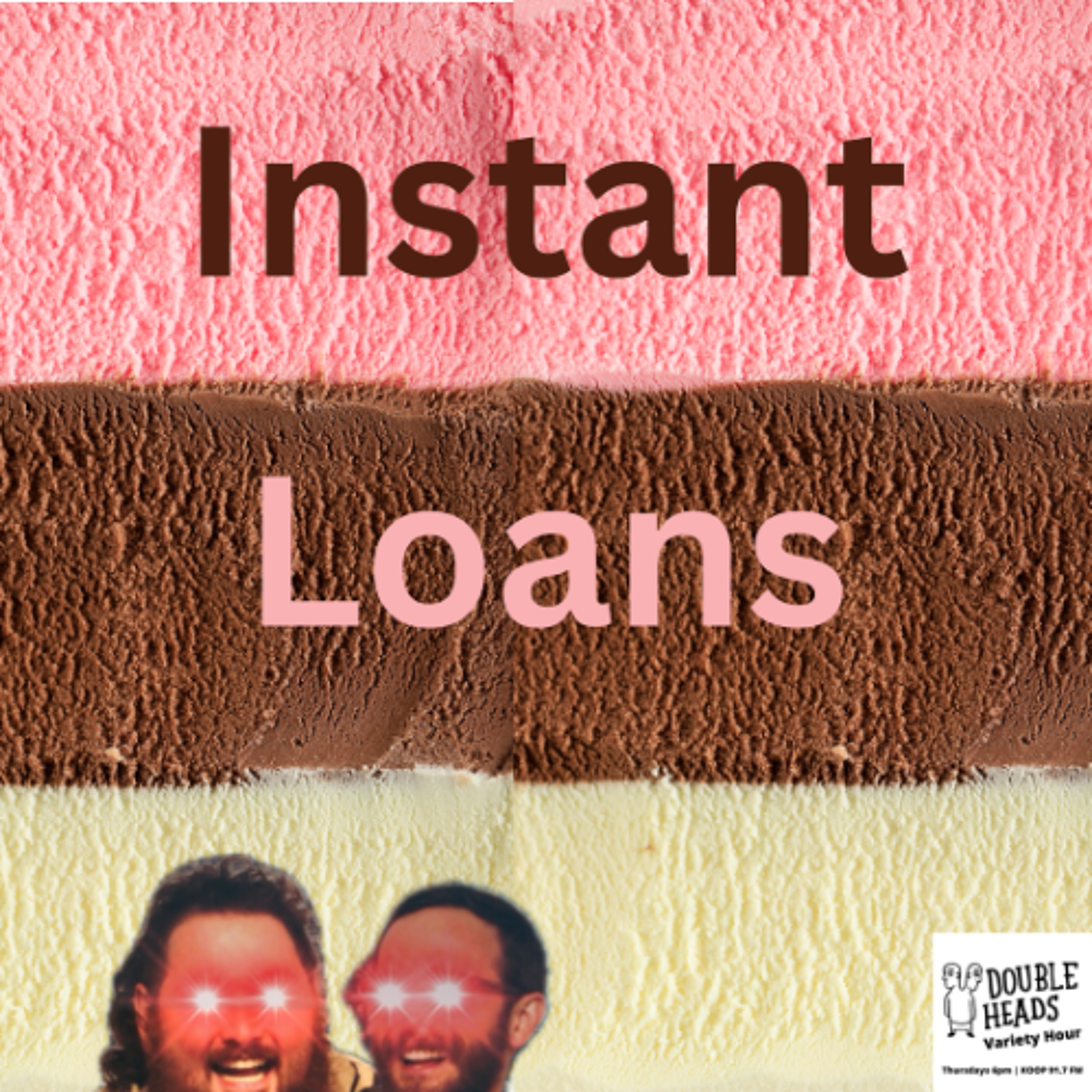 Double Heads Variety Hour presents "Instant Loans," where DJs Dillon Minacci and Matt Fox present a playlist combining Memphis Soul and Spanish guitar. They apply for loans, meet a sleepy man, and discuss unicorn incarceration.