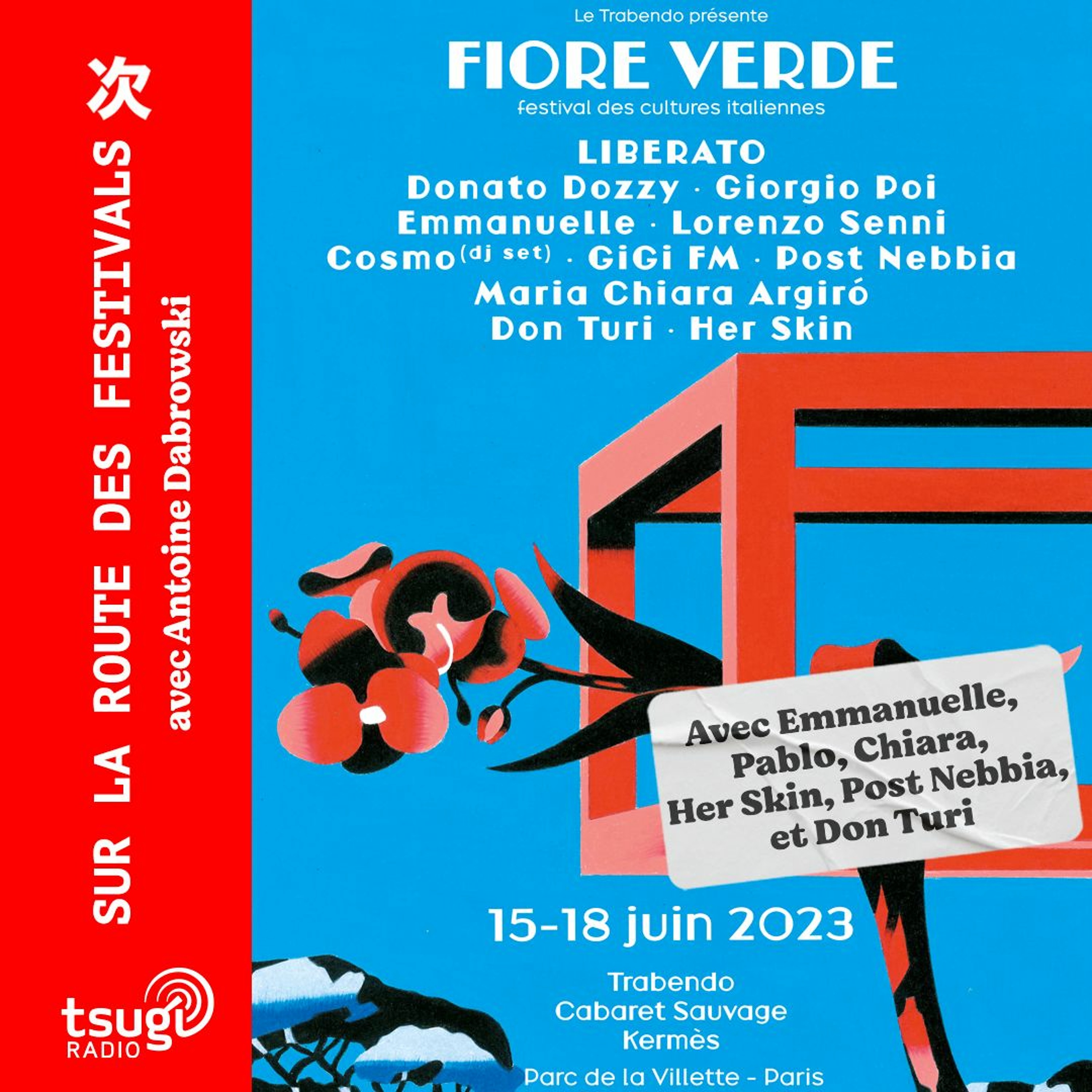 Imaginé par le Trabendo, La Villette accueillait son premier festival consacré à la musique et aux cultures italiennes. Installé sur la pelouse à côté de Kermès, à deux pas de la Philharmonie et de la Grande Halle de Villette, Antoine Dabrowski reçoit les artistes de cette première édition. Une émission qui s'ouvre par le compte-rendu de l'épique concert de Liberato au Cabaret Sauvage relaté par Benoît Felix-Lombard.