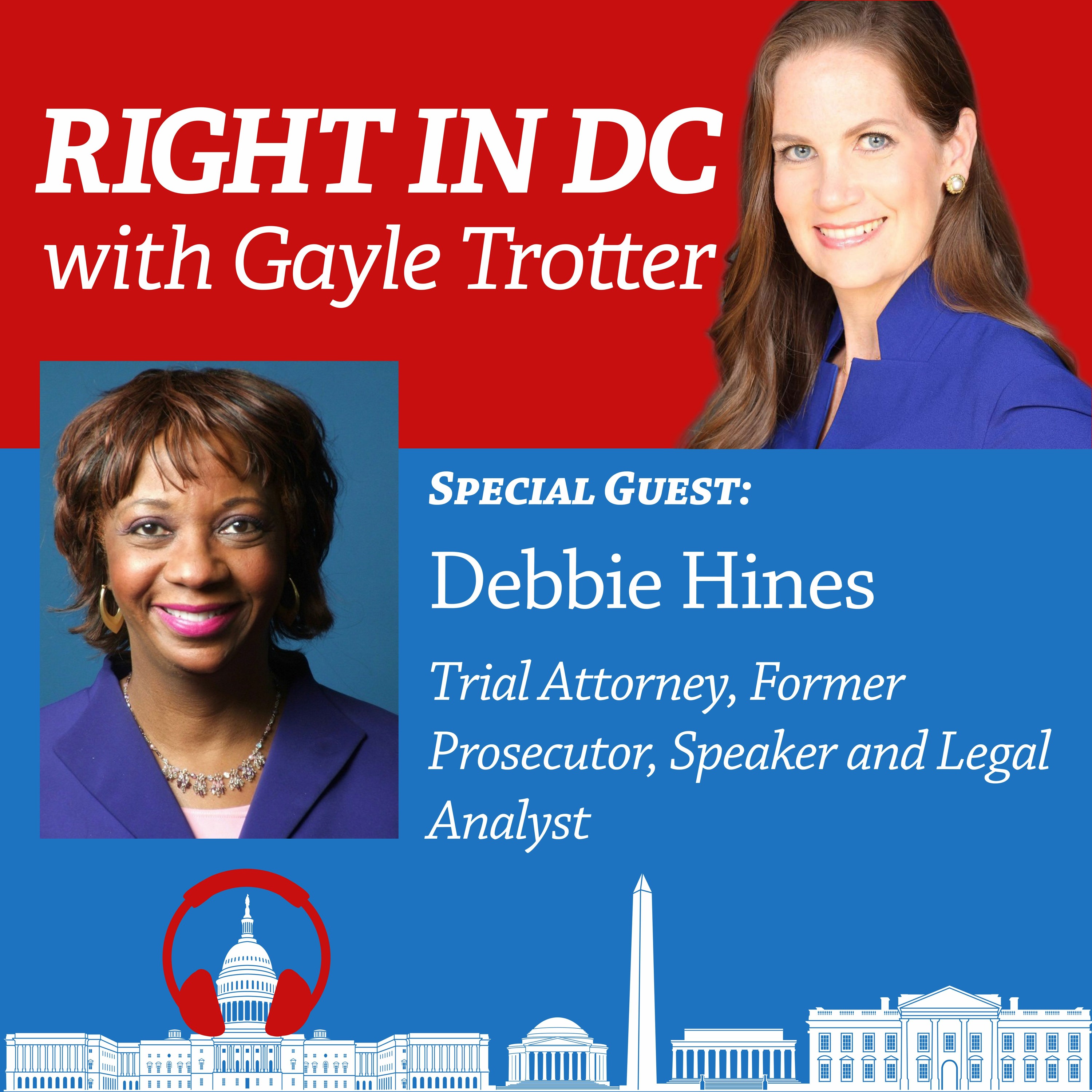 My guest on RIGHT IN DC is Debbie Hines, a practicing trial attorney who lives in Washington, DC. She has a boutique law firm practice focused on civil and criminal law. After graduating from George Washington University School of Law, she started her career in Baltimore as a prosecutor where she tried homicides, attempted murders, rapes, burglaries, robberies, narcotics, and economic crimes before juries and participated in grand jury investigations. She then went into private practice where she represented clients in courtrooms in jury trials across the country and has tried cases in federal courts, appellate and local state courts. Debbie frequently appears in the media as a legal commentator and legal analyst addressing high profile legal cases. We first met when we were recently on a law panel on Laura Ingraham’s show on Fox News.