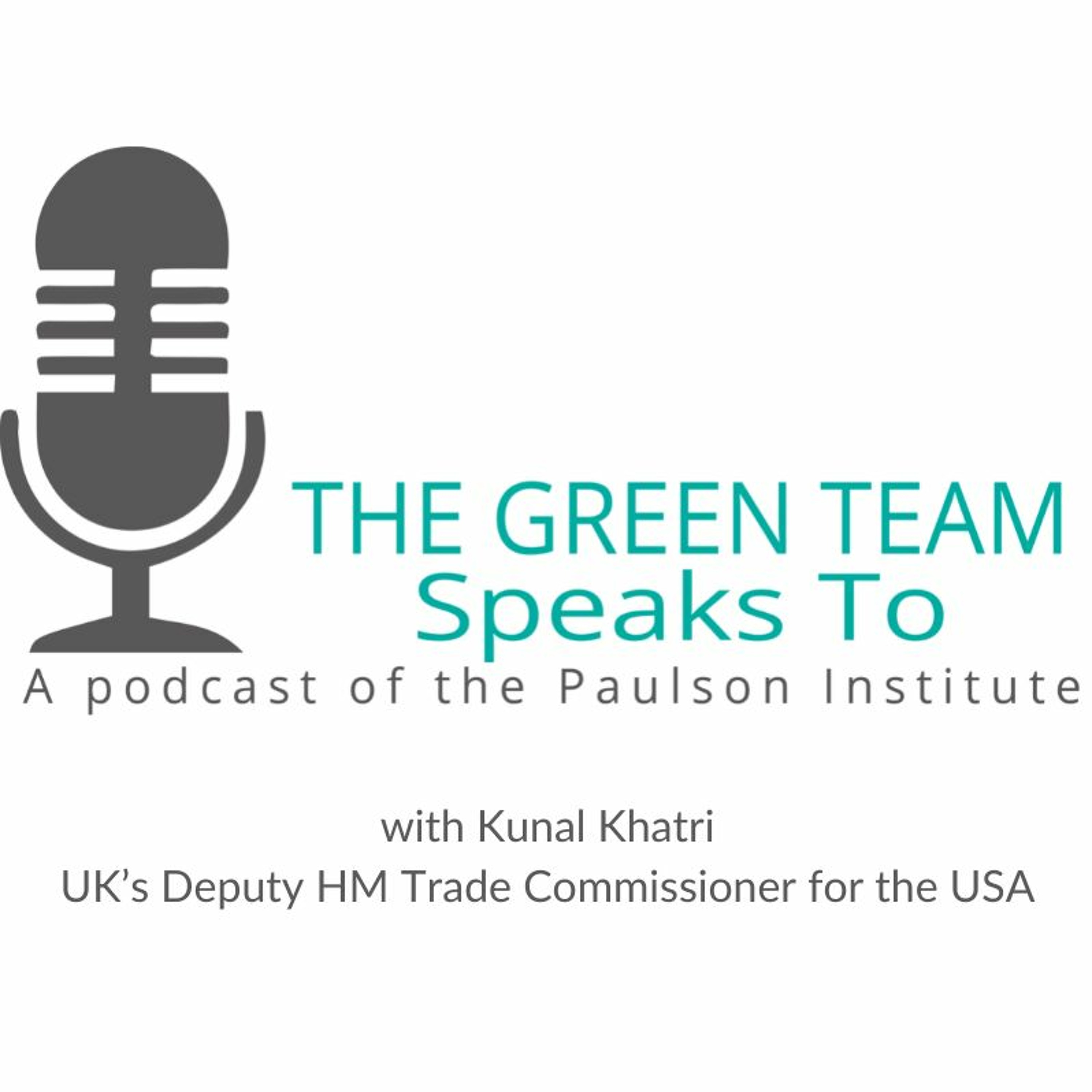 Deborah Lehr (Vice Chairman and Executive Director of the Paulson Institute) welcomes Kunal Khatri (Deputy HM Trade Commissioner for the USA) to the Green Team Speaks to podcast. They discuss green finance progress in the UK and China, ESG developments, and financial innovations. He shares his experiences working in the US, the UK, and China facilitating trade and communication among these countries and the policies and financial innovations he thinks could be most helpful in addressing climate and biodiversity simultaneously.