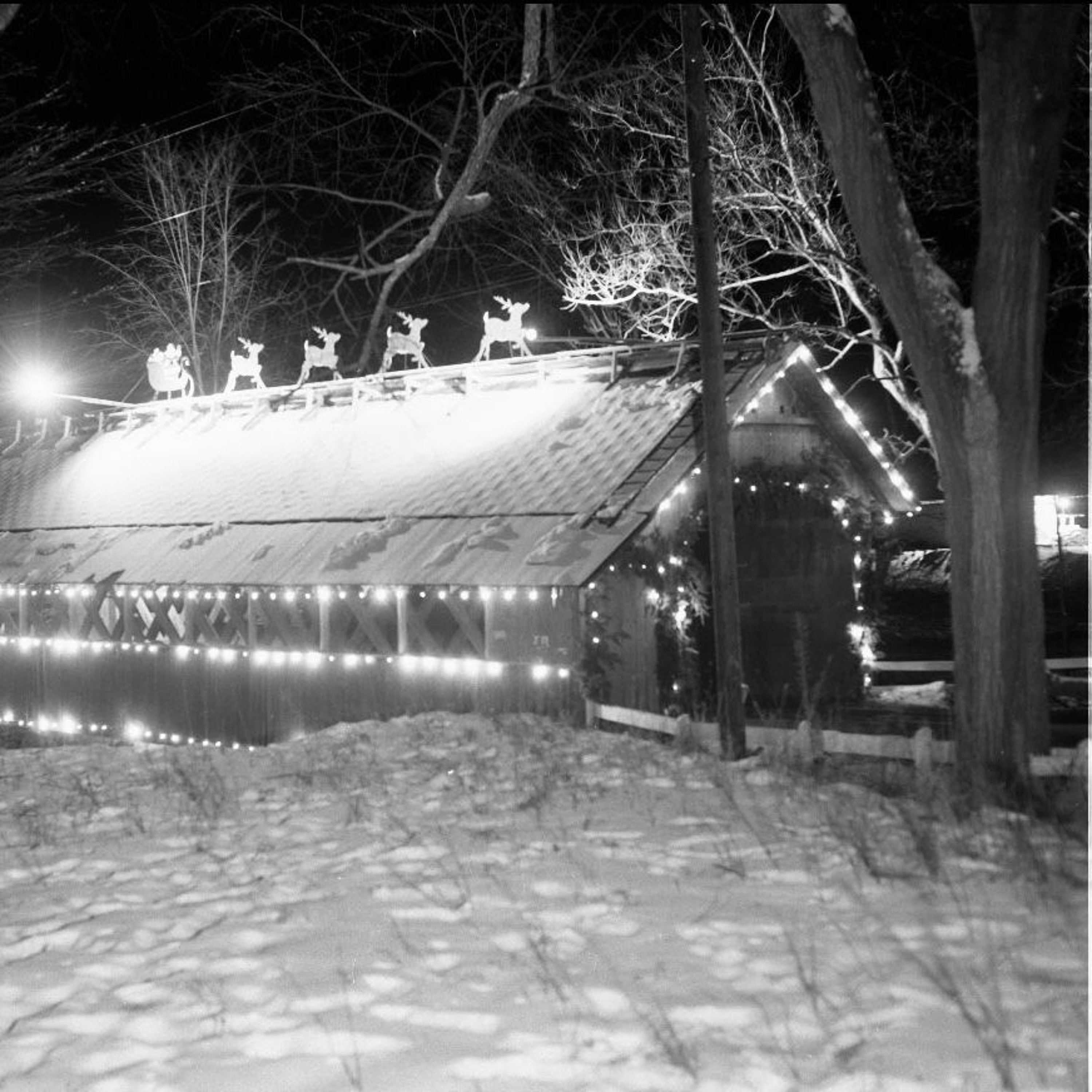 In 1958 the Creamery Bridge was decorated for the holidays by the Lions Club. The lights remained on until Winter Carnival. This was a tradition for many years.