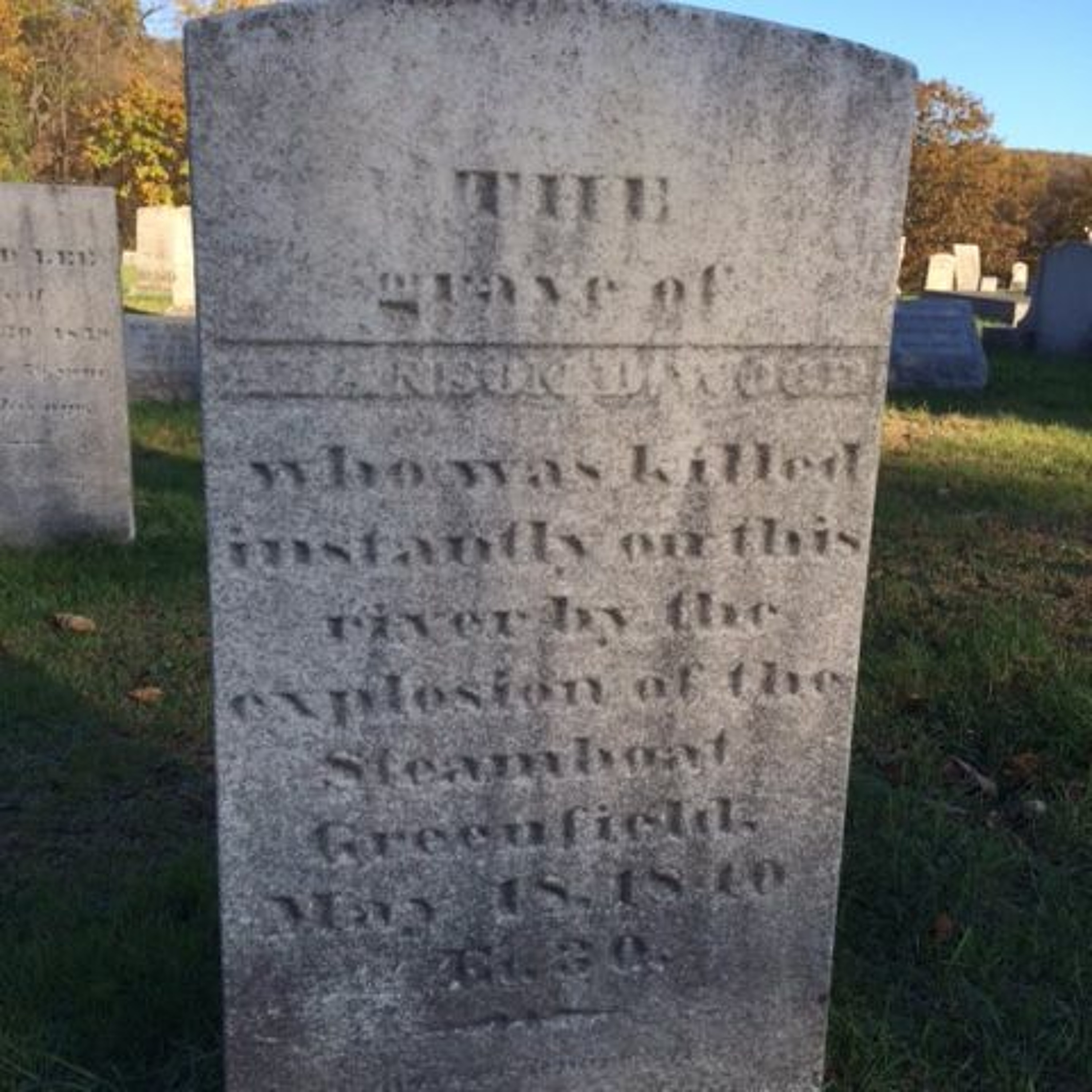 The grave of Alanson D. Wood who was killed instantly on this river by the explosion of the steamboat Greenfield May 18, 1840”. Here's his story...
