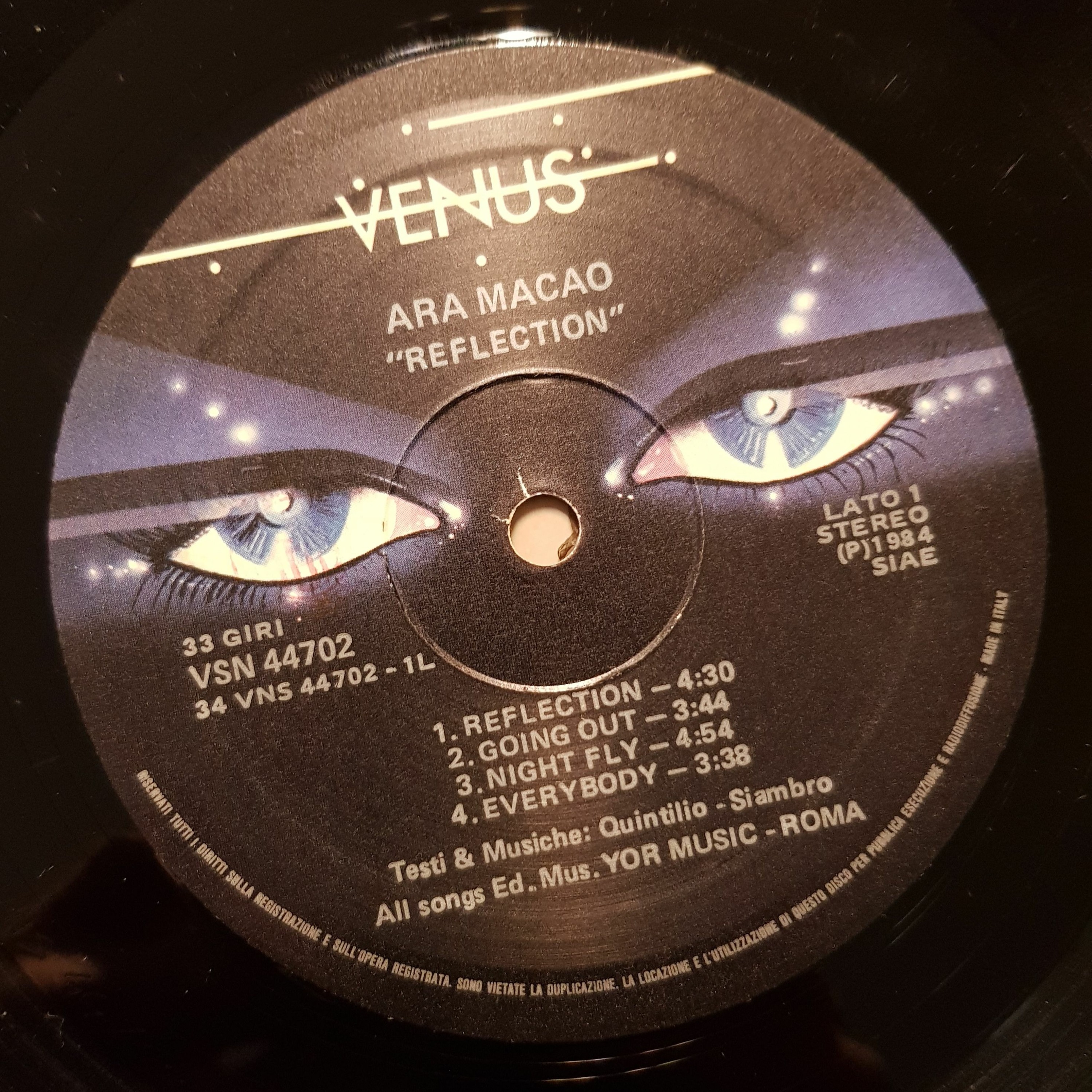 1984 VENUS label pressing, STEREO, cat. VNS 44702, Italy.