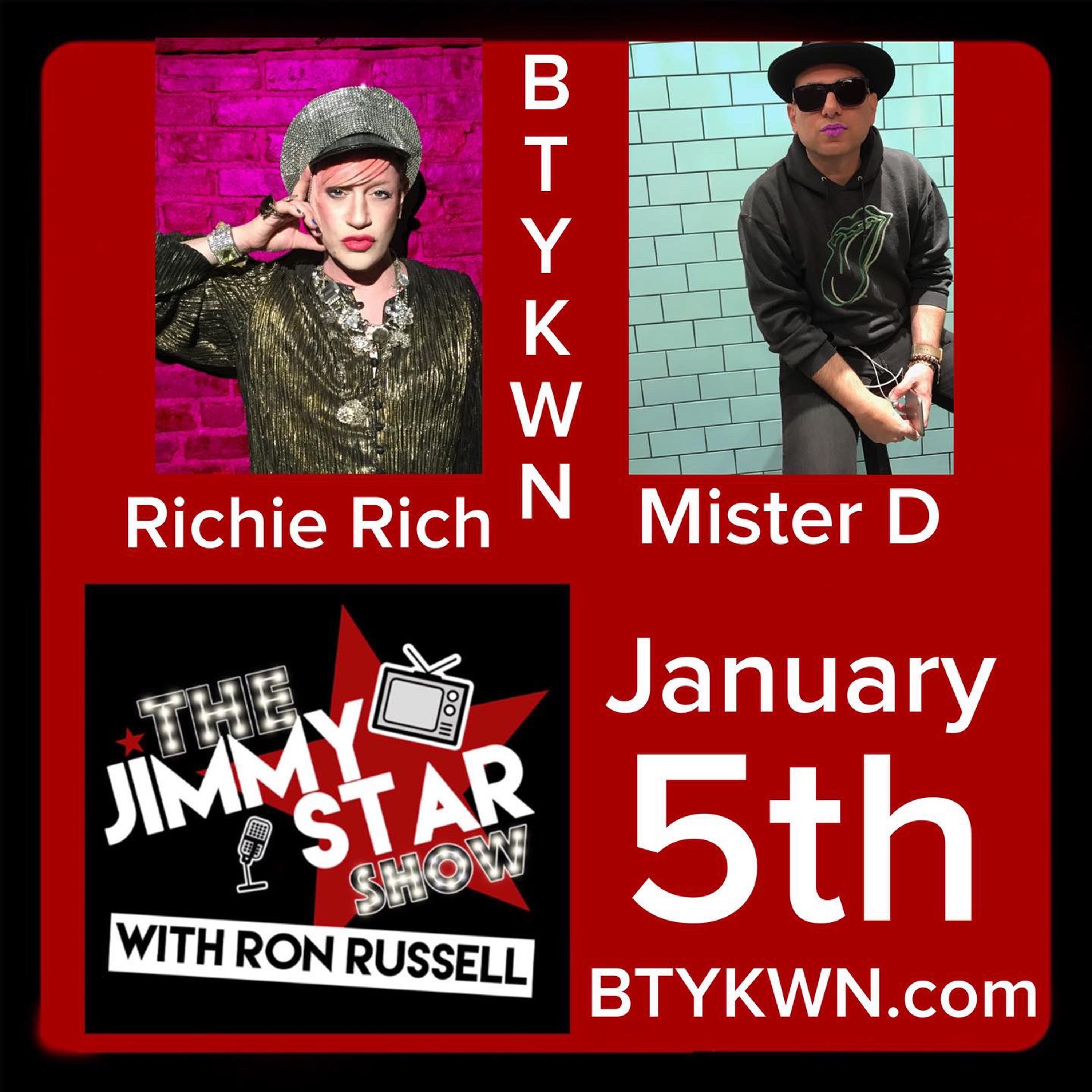 Fashion/Pop Culture Icons Richie Rich and Mister D along with Country Superstar J Edwards join us on this episode of The Jimmy Star Show with Ron Russell broadcast live from the W4CY studios on Wednesday, January 5th, 2022.