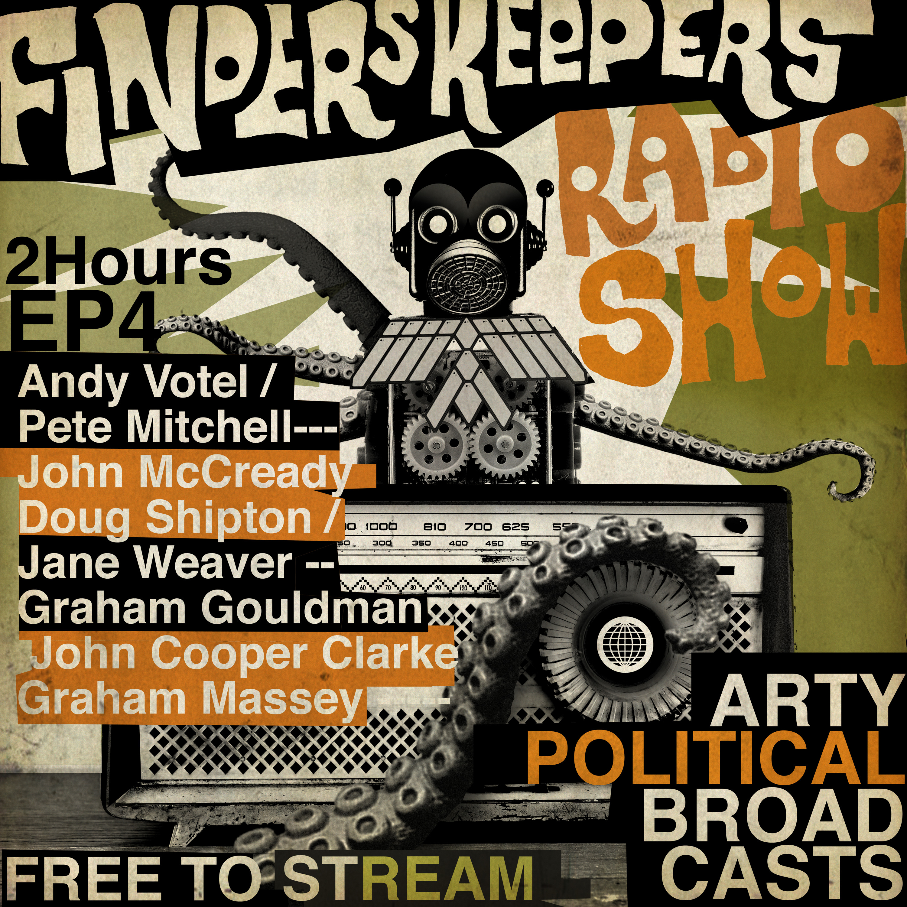 With general election fever looming over our tiny island this month, the members of the B-Music assembly retreat to the Keepers Cottage to grunt, snarl, manipulate the truth, talk over the top of each other and make creative promises they cannot keep. Welcome to Arty Political Broadcasts. This month The Finders Keepers Radio Show looks at art school pop in all its guises - from DIY punk to flamboyant rock excursions; from punk poetry to opinionated pop via agit new wave, visiting theatre, sleeve art and a whole host of global artistic pop funk gestures along the way. Gathered for this one-off special message stalwarts Votel, Shipton, Mitchell do there utmost best to cram too many opinions into one space and overwhelm the listener in true parliamentary style joined throughout the show by original B-Music honcho, writer and closet situationist obsessive John McCready. Sporadic visits from extra special guests Graham Gouldman from 10cc, poetic spokesman John Cooper Clarke and Jane "Silver Globe" Weaver make this edition of our monthly mutant music magazine all the more enthralling while Graham Massey takes our reluctant mascot Tapeworm from the tip to the Toolshed and we keep the punkish paraphernalia rotating in vinyl and cassette form way beyond curfew. Consider this parliament hung(over)!