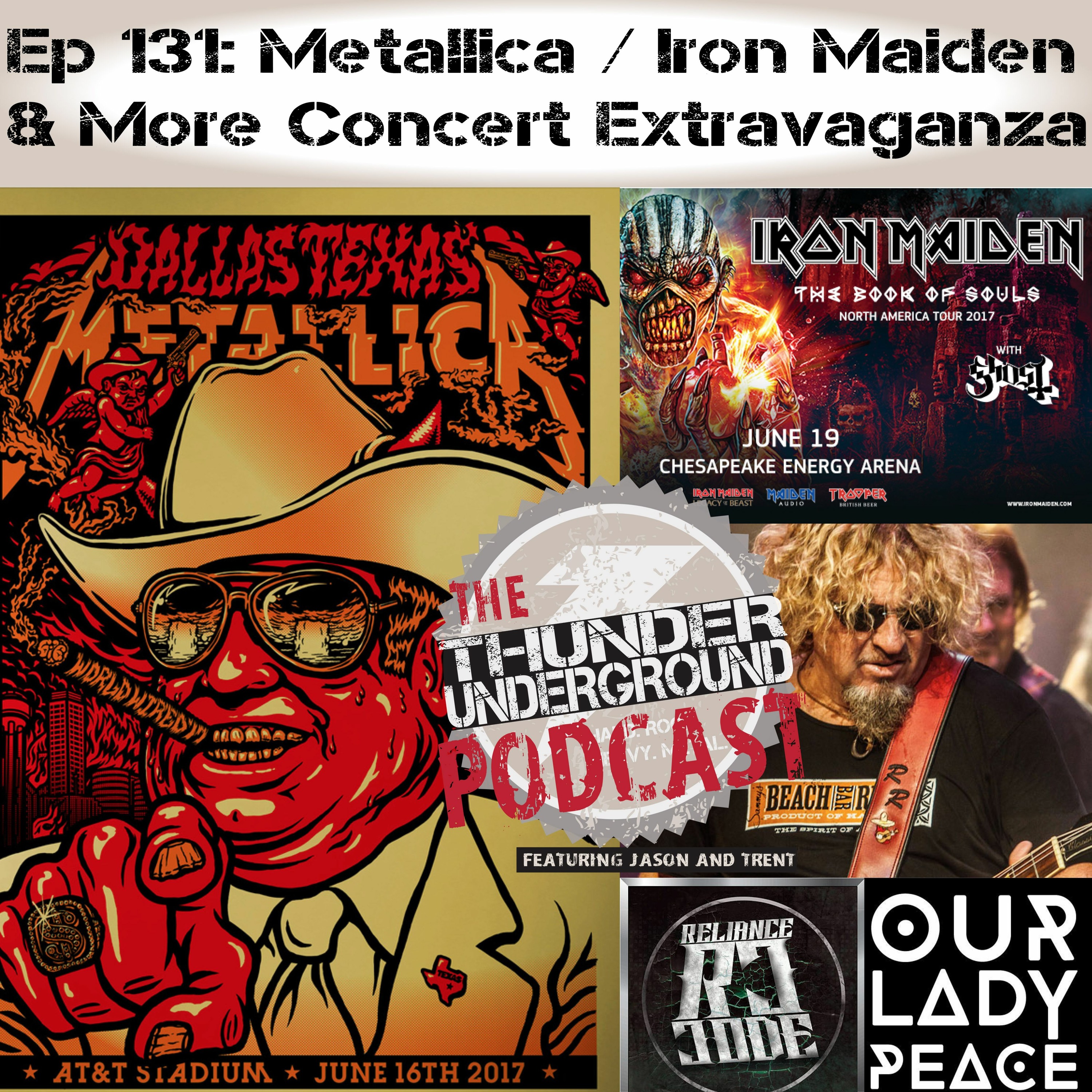 In this episode we talk about several concerts from the past couple weeks. We kick it off with talk about Sammy Hagar and the Circle in Tulsa. Sammy, Michael Anthony, Vic Johnson and Jason Bonham brought the rock of VH, Sammy, Zeppelin, Chickenfoot, and Montrose. We then get into a full report of our experience at ATT Stadium in Dallas seeing Metallica bring a massive show to the masses with great opening sets from Avenged Sevenfold, Local H, and Mixmaster Mike. After Dallas we traveled to Fort Smith for the Reliance Code CD release show at the Sound Room that also featured great sets from Screaming Red Mutiny, Vague Vendetta, and The Revolutioners. We also celebrate this release by playing one of RC's new songs. Next up we talk about the experience of seeing Iron Maiden up close and personal, and how Bruce, Steve Harris and the band are one of the best you will ever see. Ghost opened the show, and yes we loved it. Then we end it with talk about Collective Soul, Our Lady Peace (huge praise for Raine and the band), and Tonic playing the Zoo Amp in OKC. Thanks for listening, and please share!