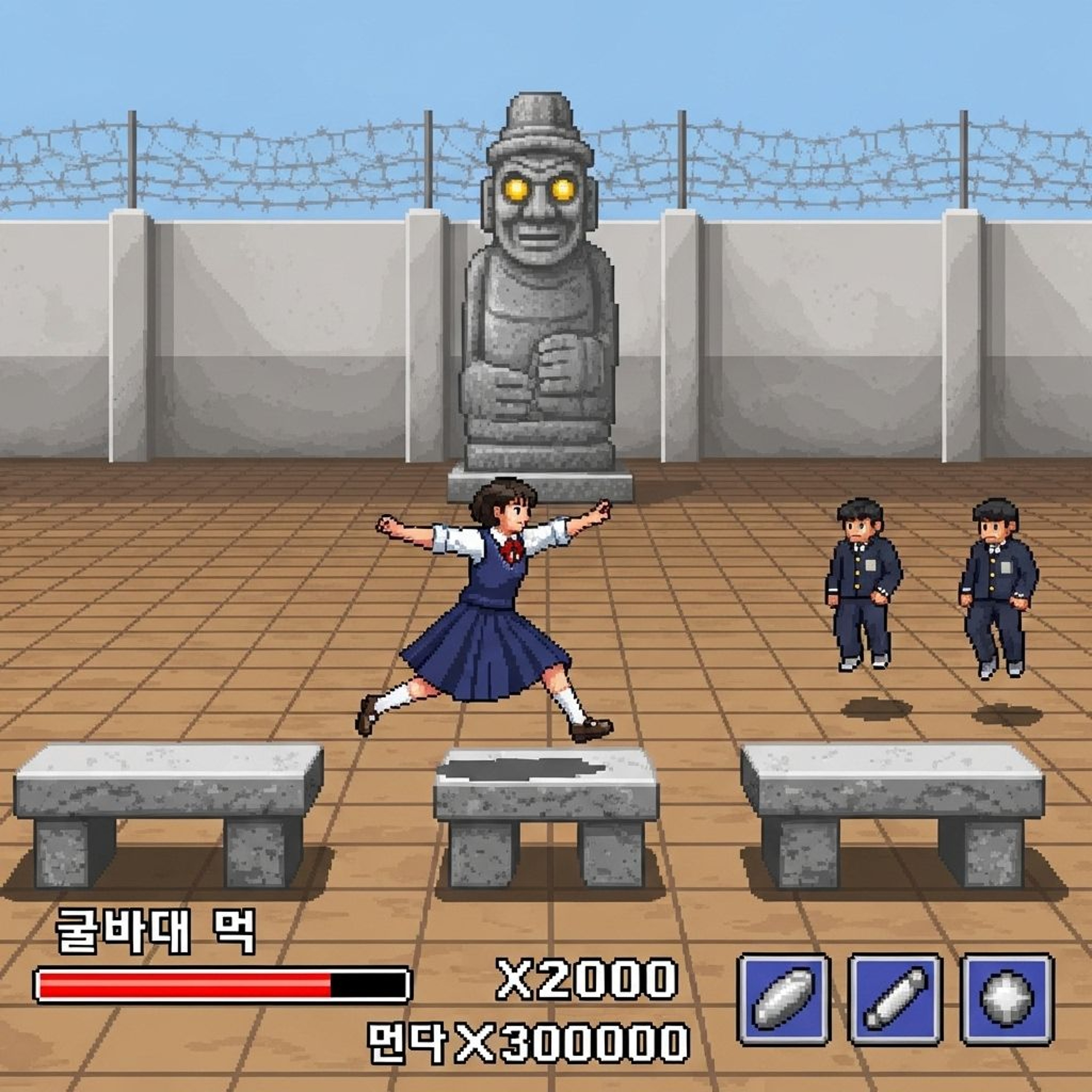 Game Play Summary: Enrolled in the city’s most secret middle school, five kids awaken ancient guardian power hidden in marble lion statues called haetae. Now they must defend their school grounds from corruption, dishonor, and demonic student council schemes. Mix side-scrolling combat with tile-based guardian summoning as you unlock the powers of law and justice… in gym class.
