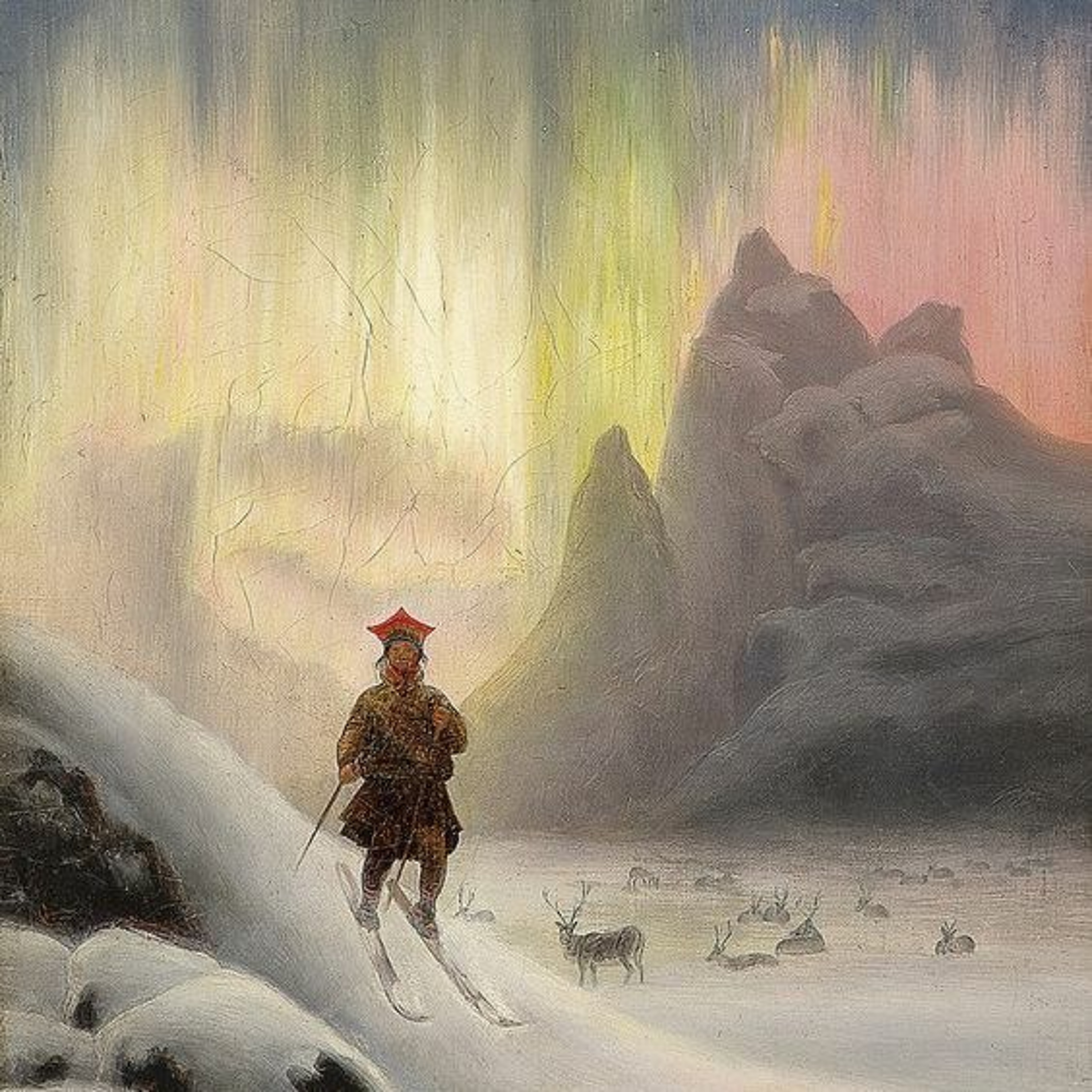 Image: Skiing Lapp with the Northern Lights(1885) by Frants Diderik Bøe