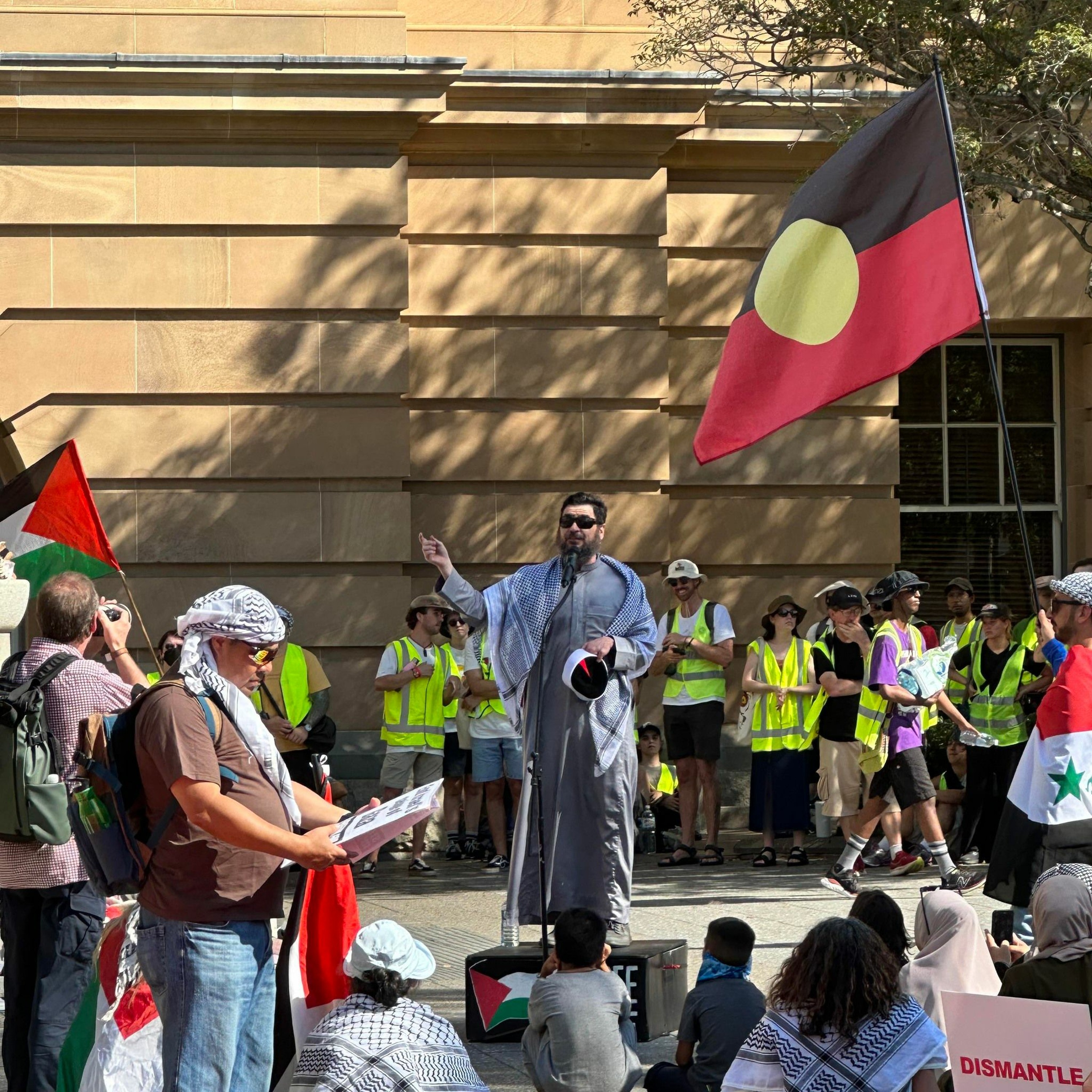 Amed Abu Ghazald speaking at Justice for Palestine rally 17 Dec 2023 it's Park.