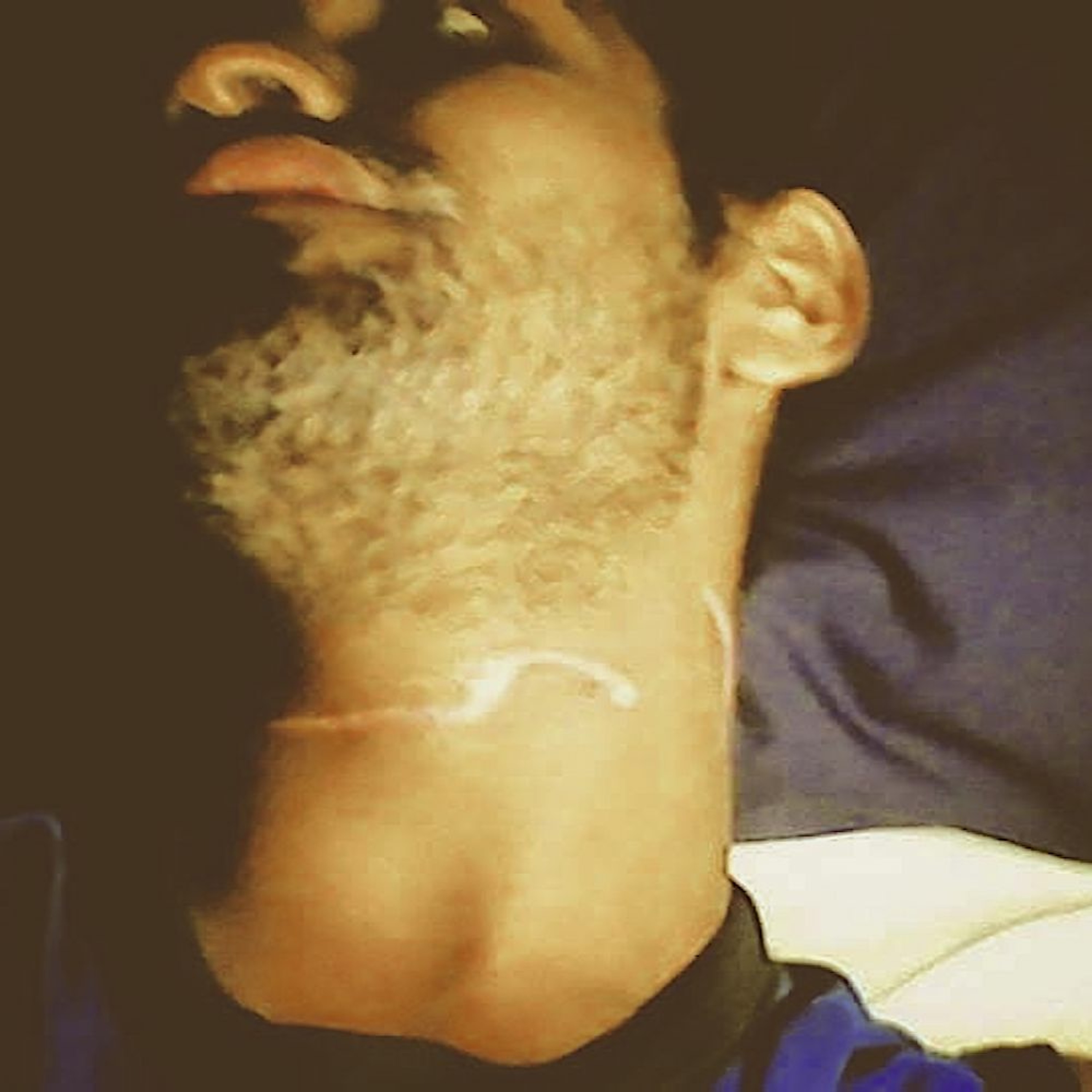 Interview with Amin Afravi, Medivac refugee held against his will at Brisbane International Transit Accomodation (BITA)in Feb 2021. Image shows wounds sustained by Amin after his throat was cut by one of the G4S guards in PNG.