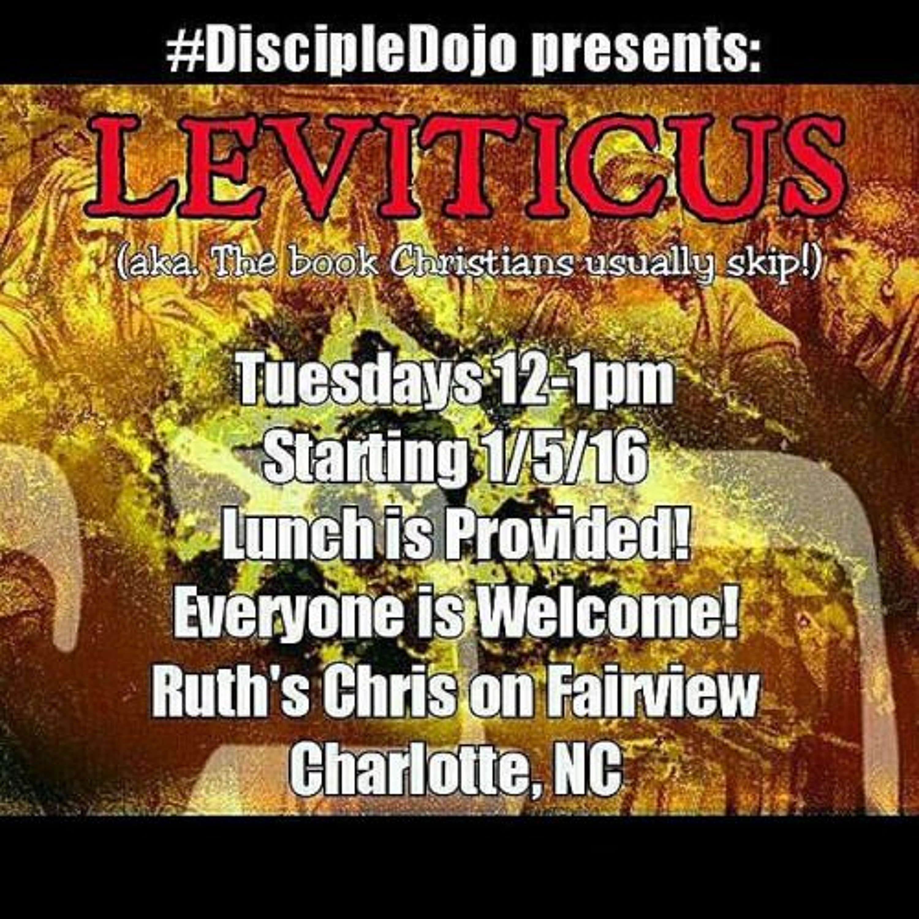 This is a series of weekly half-hour Bible studies on the book of Leviticus that Disciple Dojo founder, JM Smith leads at Ruth's Chris Steakhouse in Charlotte, NC (where the owner is gracious enough to provide both the space and the lunch!). The purpose of the study is to walk through books of the Bible chapter-by-chapter in order to build a solid Biblical foundational worldview and to be challenged by the ancient text in our modern lives.