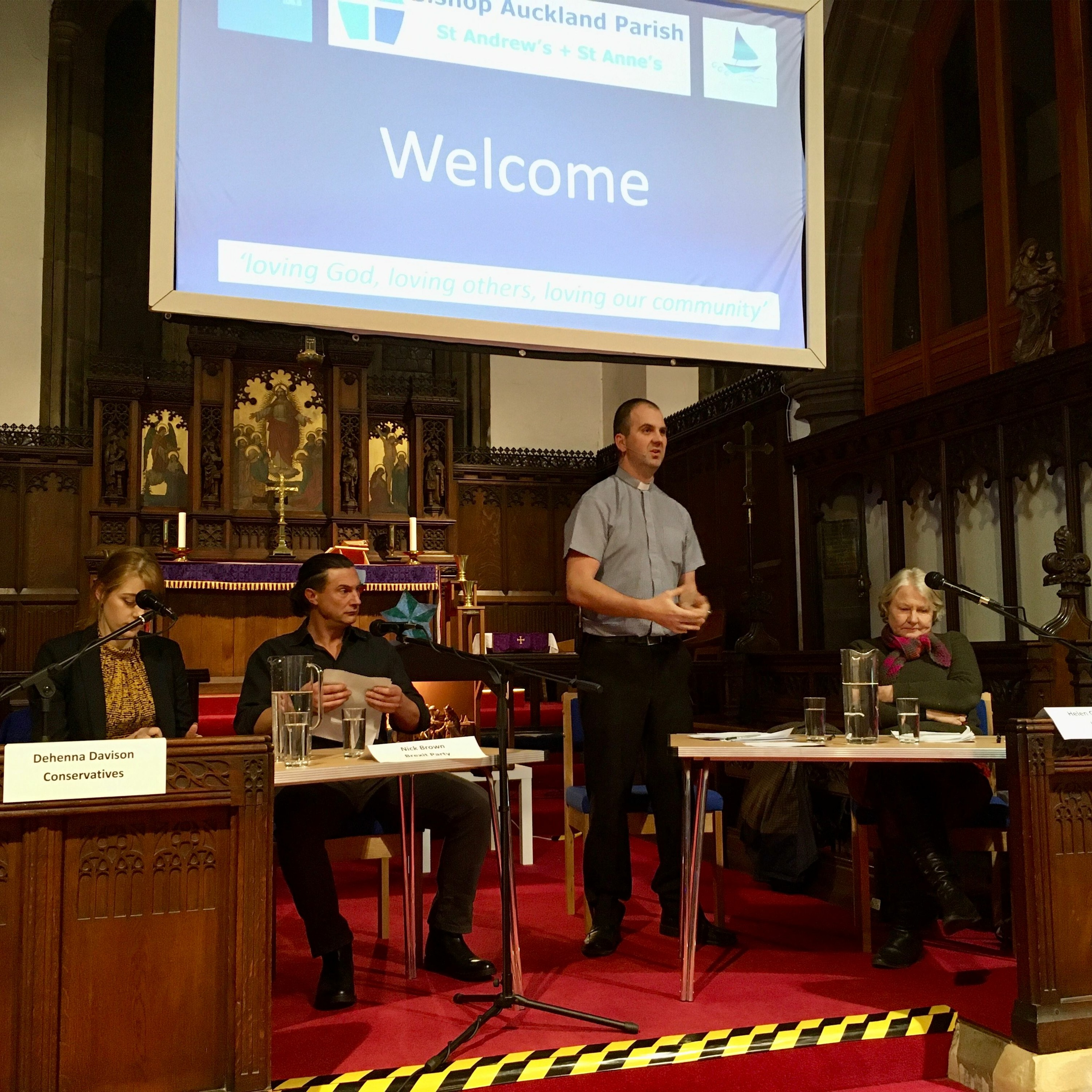 The four electoral candidates for the constituency of Bishop Auckland (Nick Brown, Brexit; Dehenna Davison, Conservatives; Ray Georgeson, Liberal Democrats, and Helen Goodman, Labour) were invited to attend and were asked a range of important questions by Reverend Matt Keddilty, the vicar for the Bishop Auckland Parish.