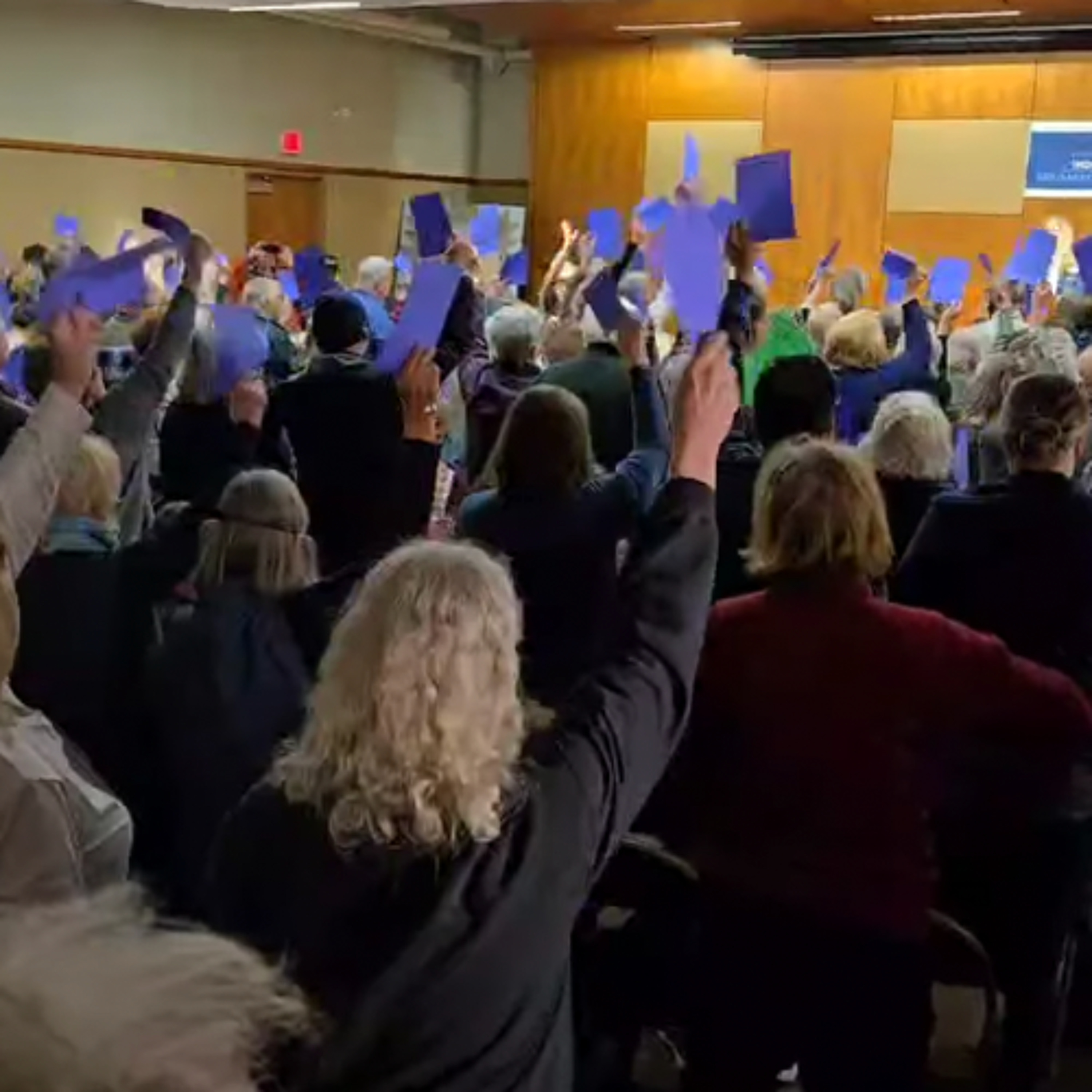 On March 23 in Glens Falls, the group IndivisibleADK held a town hall for NY Congressional district 21. Their representative, Elise Stefanik has recently been appointed ambassador to the United Nations by Donald Trump, but has yet to be confirmed. Members of IndivisibleADK claim that Stefanik has been ignoring her constituents for some time as she pursues a national or international spotlight. The meeting, which was filled to capacity with several people unable to get in to the hall, had a cardboard cutout of Stefanik on a chair at the front of the room. After an introduction from Cheryl Bratton, members of the audience posed questions to their absent Congressperson.