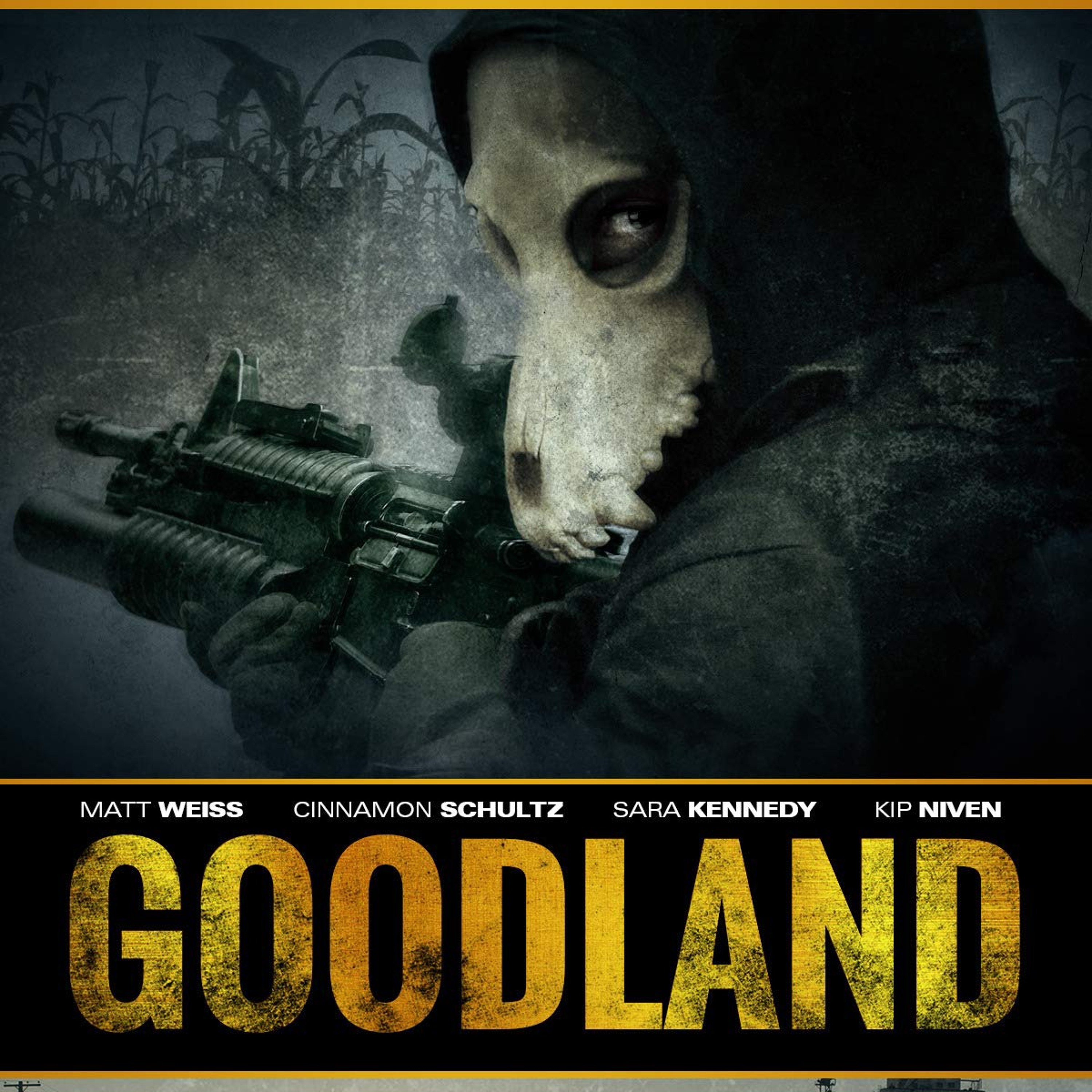 Goodland was filmed in his hometown of about 4,000 people in Western Kansas and he included as many locals as he could in order to help bring the project to life. We used all practical locations, had vehicles, tractors, props, and costumes donated. He was able to buy a 1990 Crown Vic for $1 from a local car dealership who wanted to help out, and then he repainted it to be a cop car - complete with a donated light bar from the local sheriff's office. The City of Goodland shut down streets, turned electricity on in abandoned buildings, and pretty much gave him free rein over the town while he was in production.