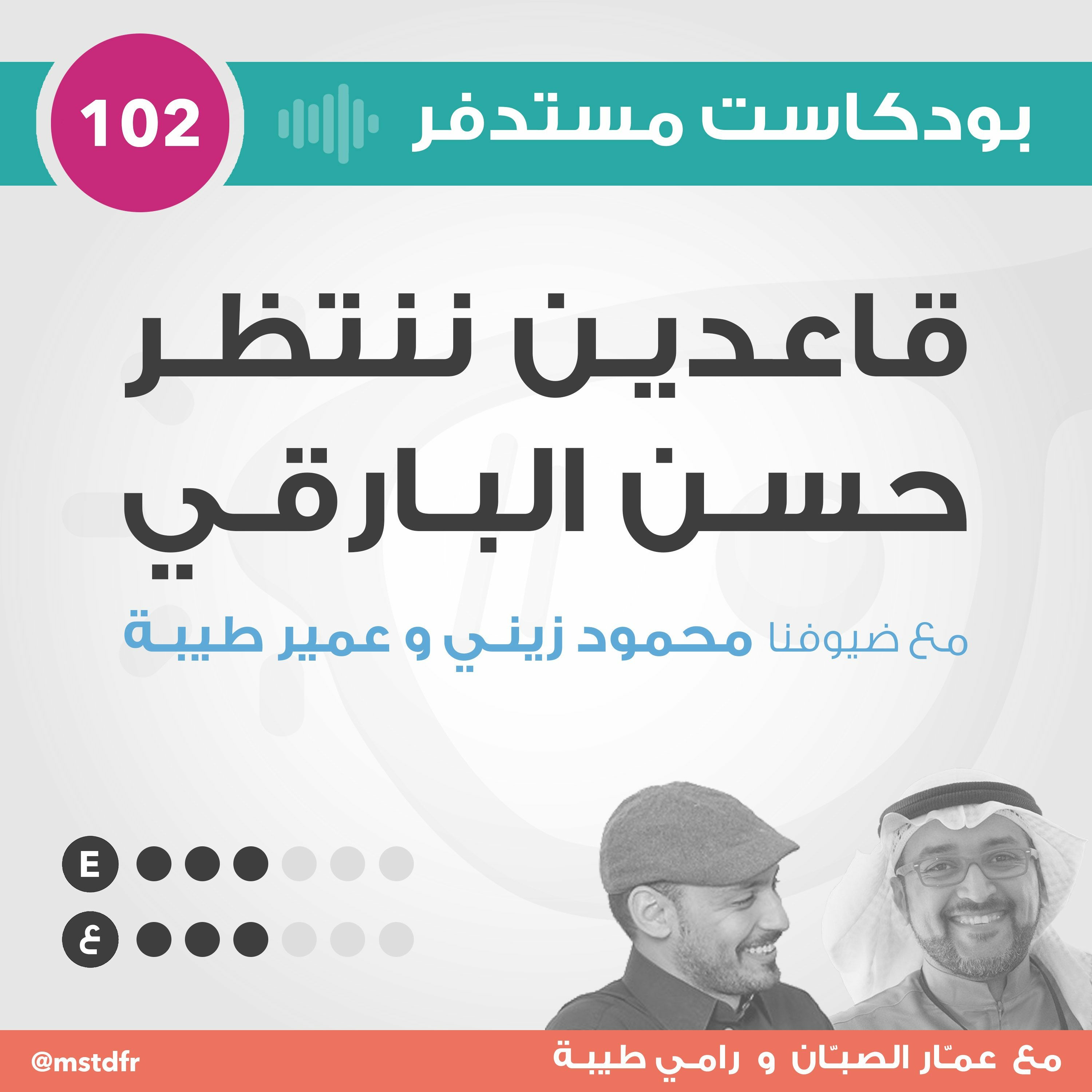اليوم أجتمعنا عشان نسجل حلقة… وقبل ما نبدأ عرفنا إنه صاحبنا حسن البارقي قرر يجي يشاركنا، فعبال ما يجي قلنا خلينا نجهز المايكرفونات ونبدأ ندردش شوية إلى ما يوصل حسن… المهم حسن أتأخر والمواضيع صارت حلوة فقررنا نكمل تسجيل وبقدرة قادر صار عندنا حلقة رقم ١٠٢ من بودكاست مستدفر. أتكلمنا على مواضيع مختلفة من كرة القدم ونظم التدريب للرحلات البحرية وكمان ناقشنا بعض النظريات الفلسفية في الفن والعلم. كان معانا في حلقة اليوم الفنان محمود زيني والمتألق دائماً المهندس عمير طيبة.