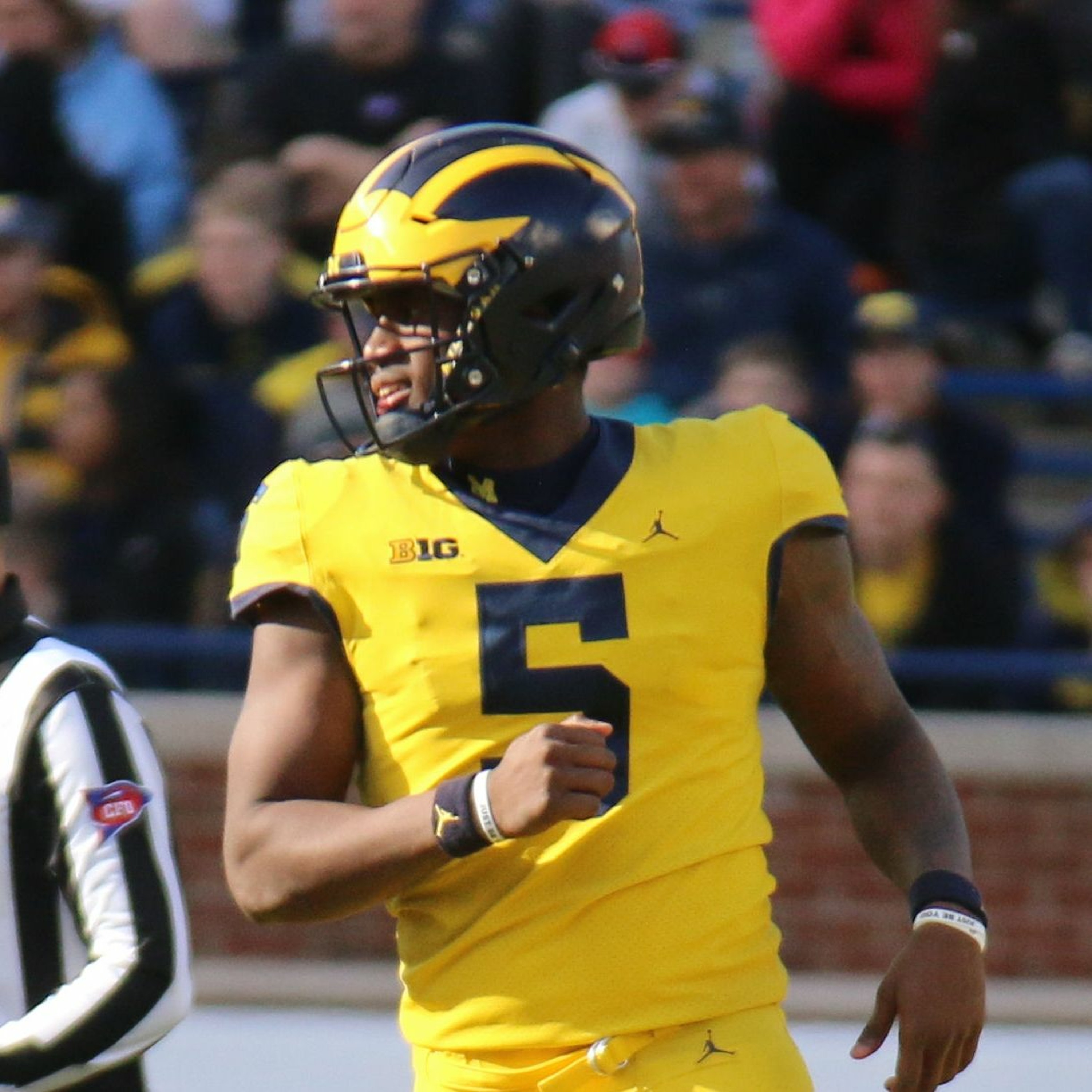 Michigan QB Joe Milton meets with the media after Michigan's 45-24 victory over Minnesota.