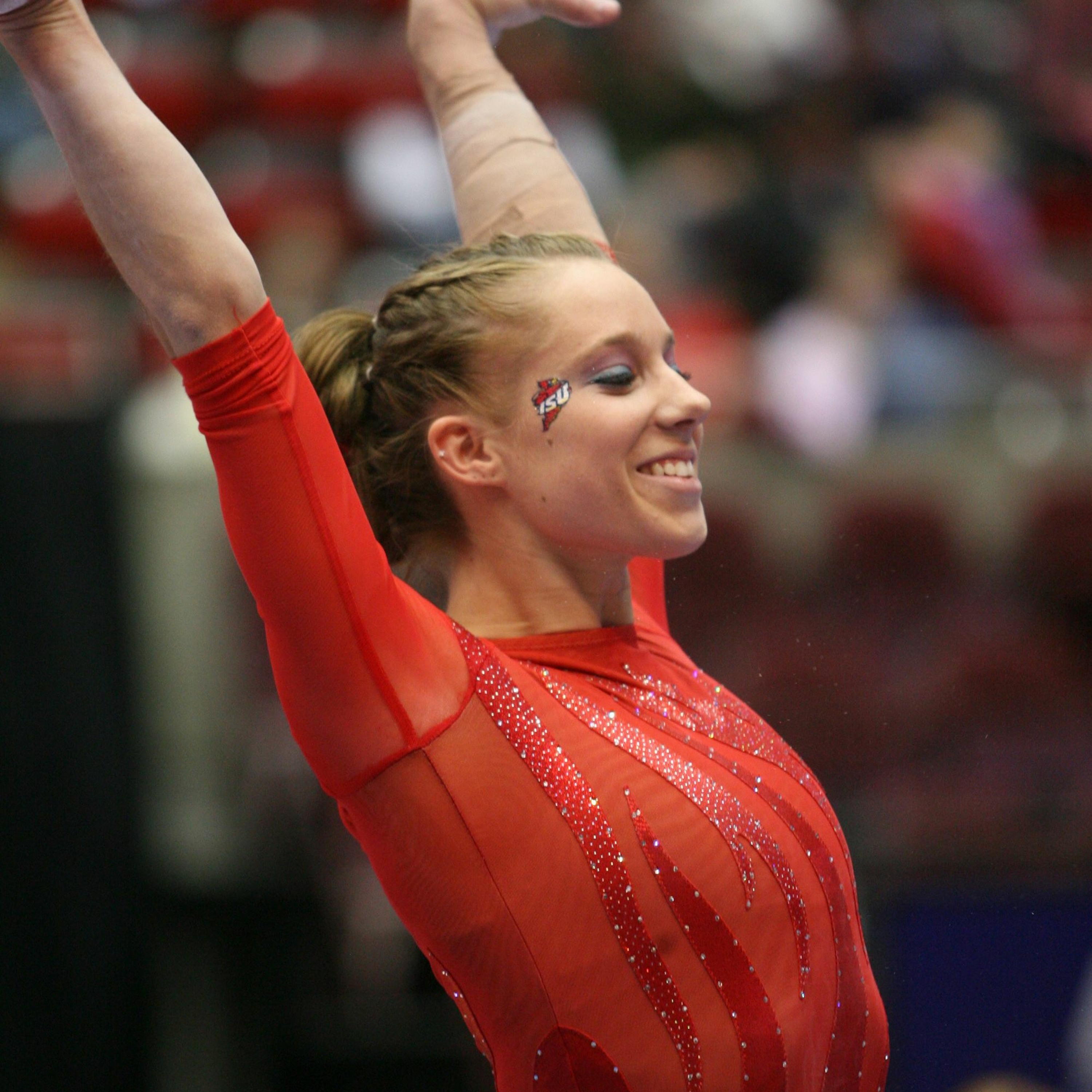 All-American gymnast Janet Anson visits with John Walters. Anson was recently voted into the Iowa State Athletics Hall of Fame.