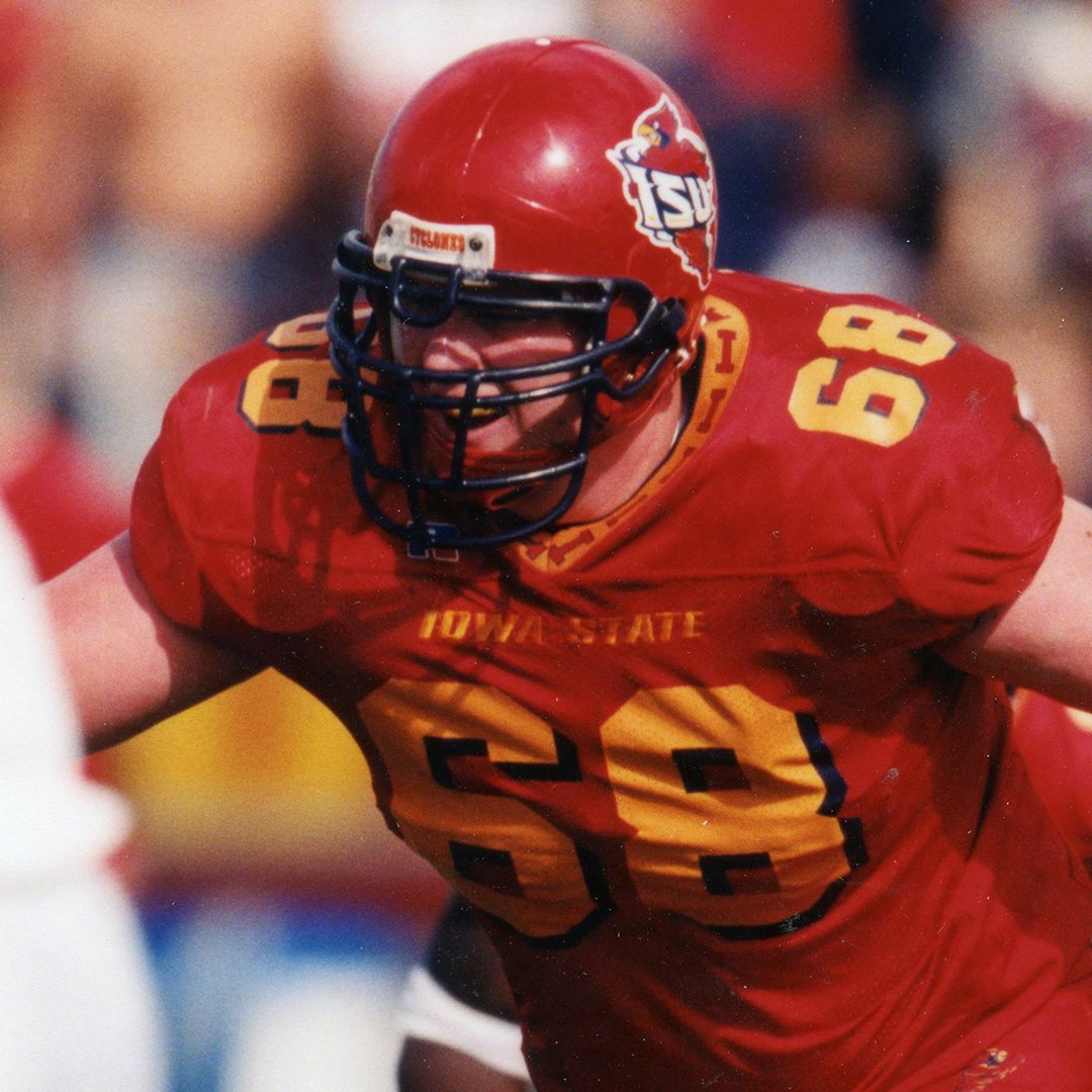 John Walters visits with former Iowa State football captain Zach Butler.