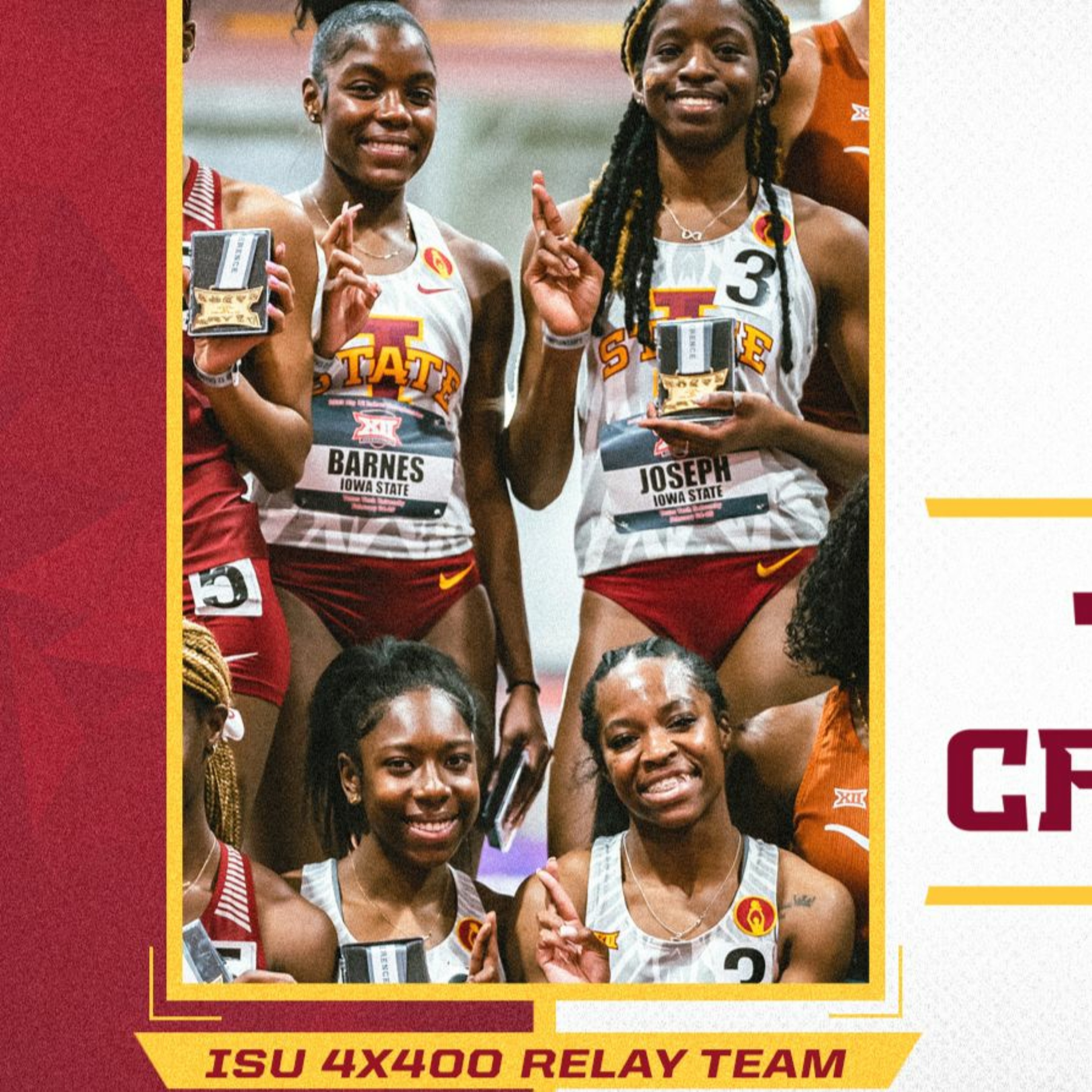 Lindsey Long, Assistant AD for Student-Athlete & Letterwinners Engagement, visits with five members of the ISU women's track and field team, who twice this season broke the school-record in the 4x400 Relay.