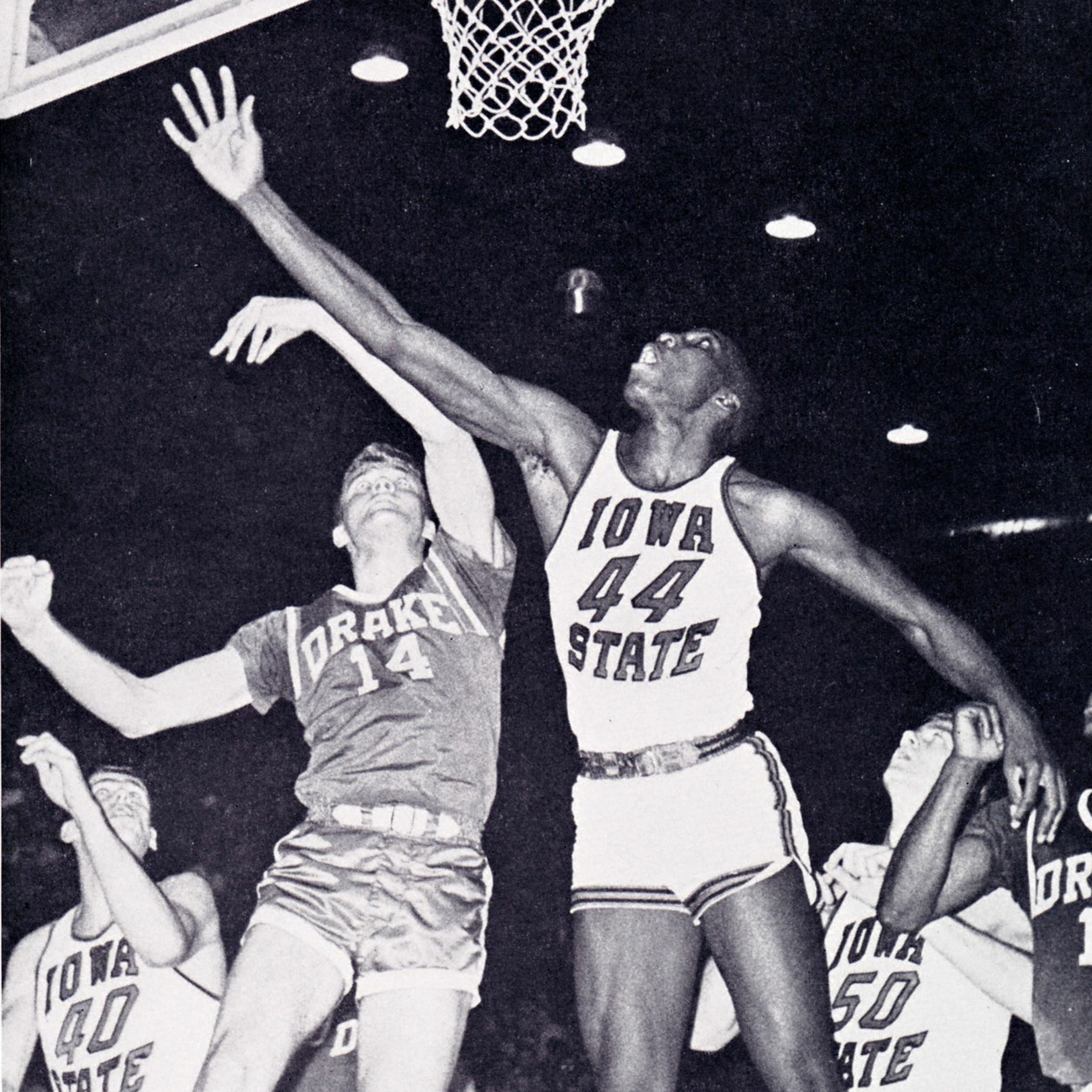 John Walters visits with former Cyclone basketball star Hank Whitney.