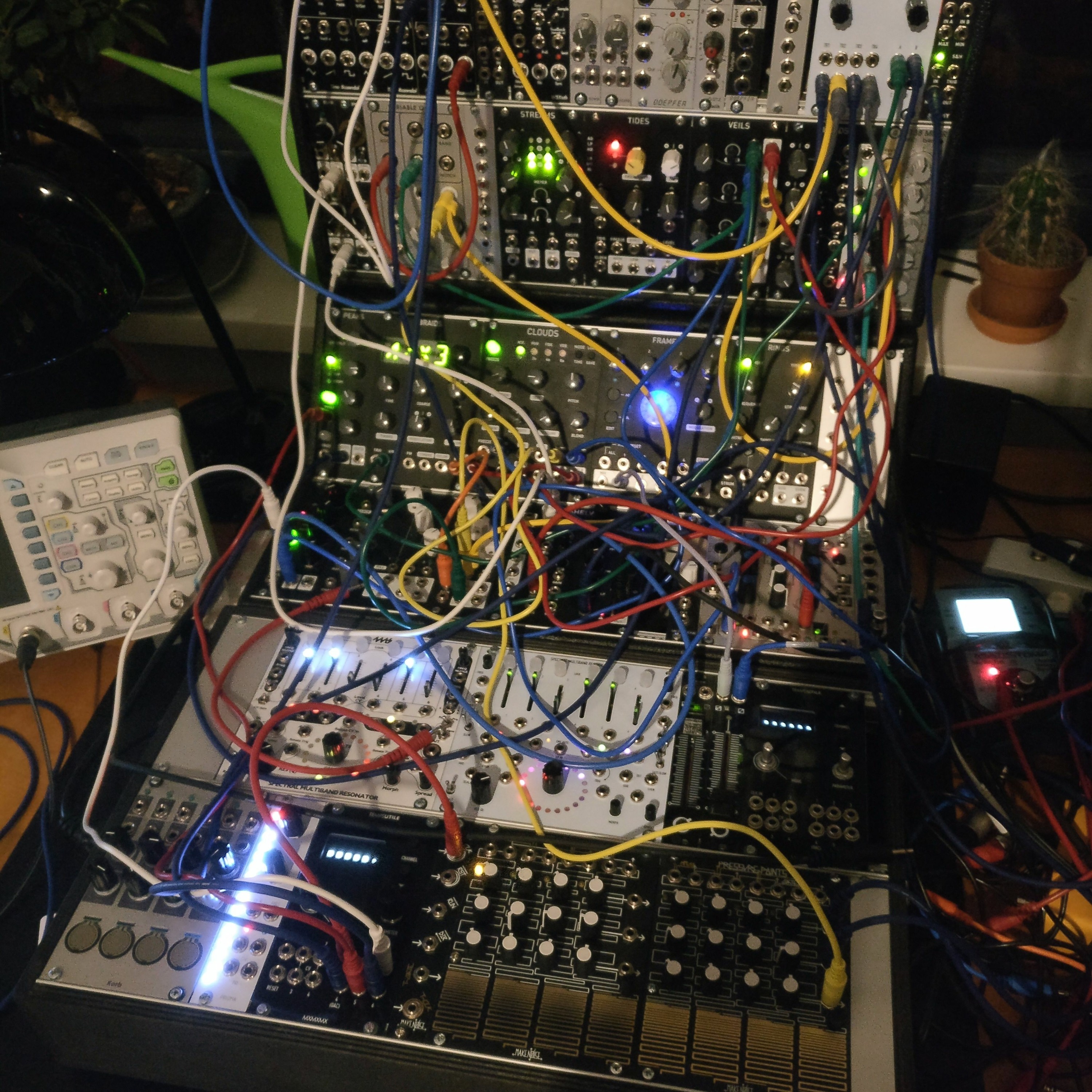 Pressure Points, Brains, Temps Utile, Ornament & Crime, CEM3340, Braids, Veils, Ripples, Variable Q VCF, Streams, Frames, Mixer, Turing Machine, Penrose, Clouds, Maths, MS70-CDR, Korb DLFO, A160-2