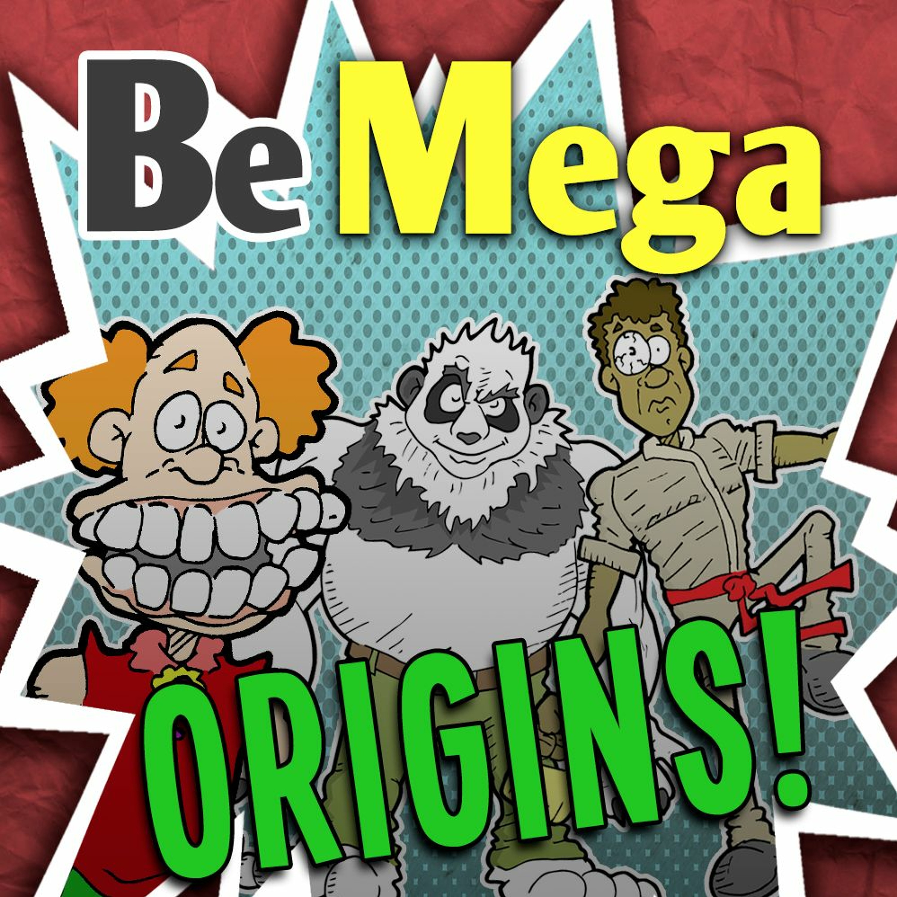 Behold, origin stories for three unlikely heroes created on the Be Mega Podcast. Experience the chompers of Crunchy Teeth, the black and white majesty of the Manda, and the caffeine-shakes of the Jitter Jerk!