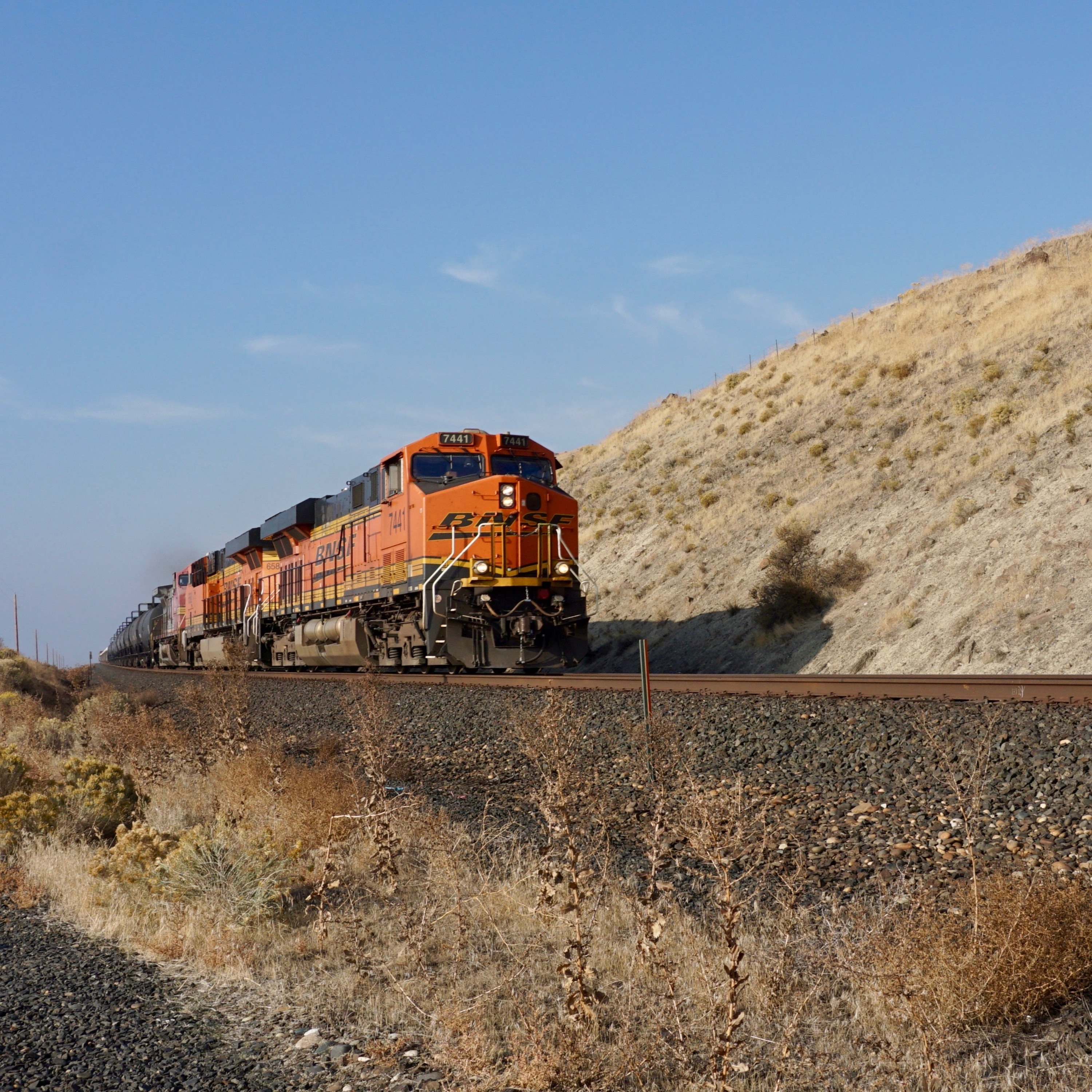 A major BNSF line runs along the Columbia River Gorge that forms the border between Washington and Oregon states, moving freight and other traffic between the coastal harbors and the interiors.